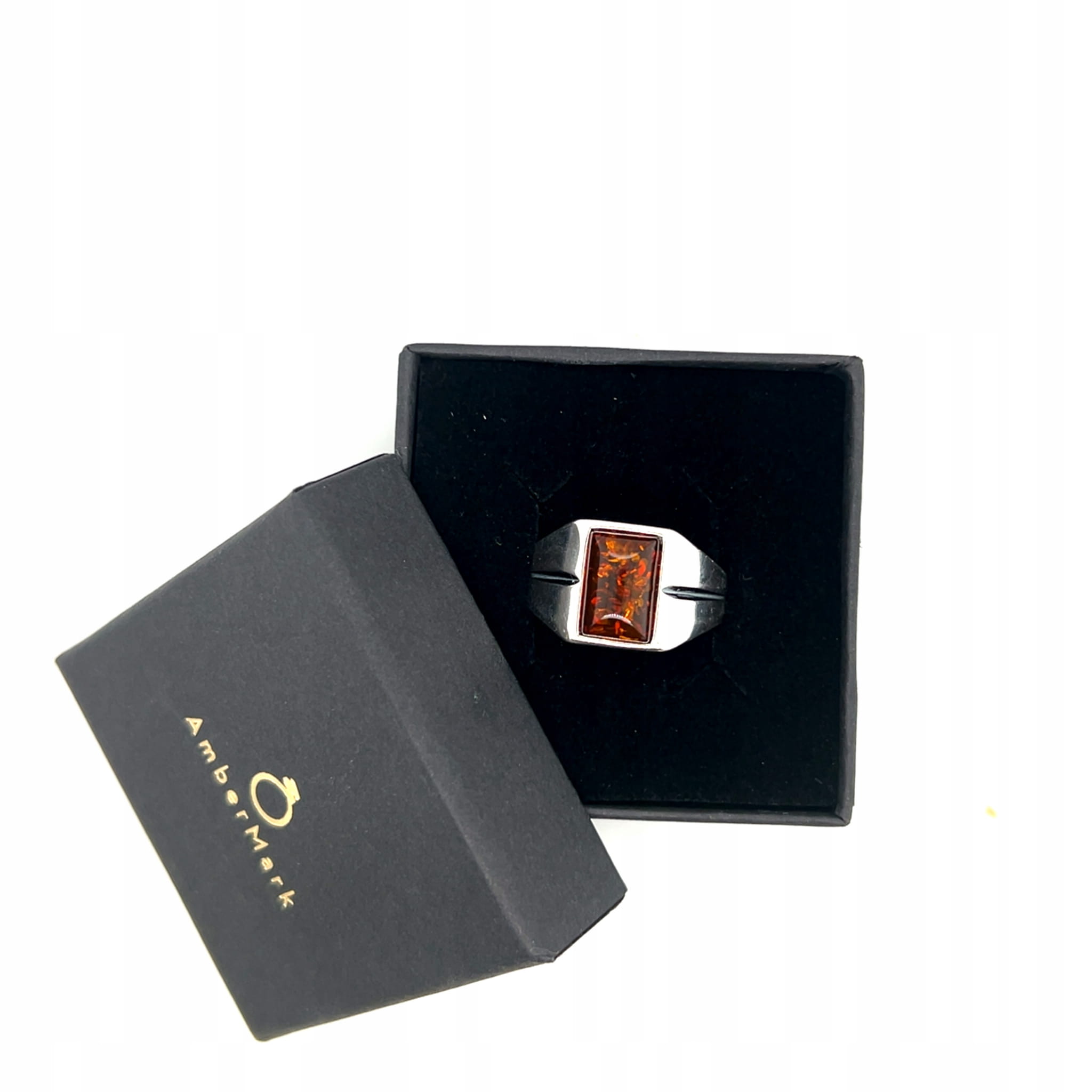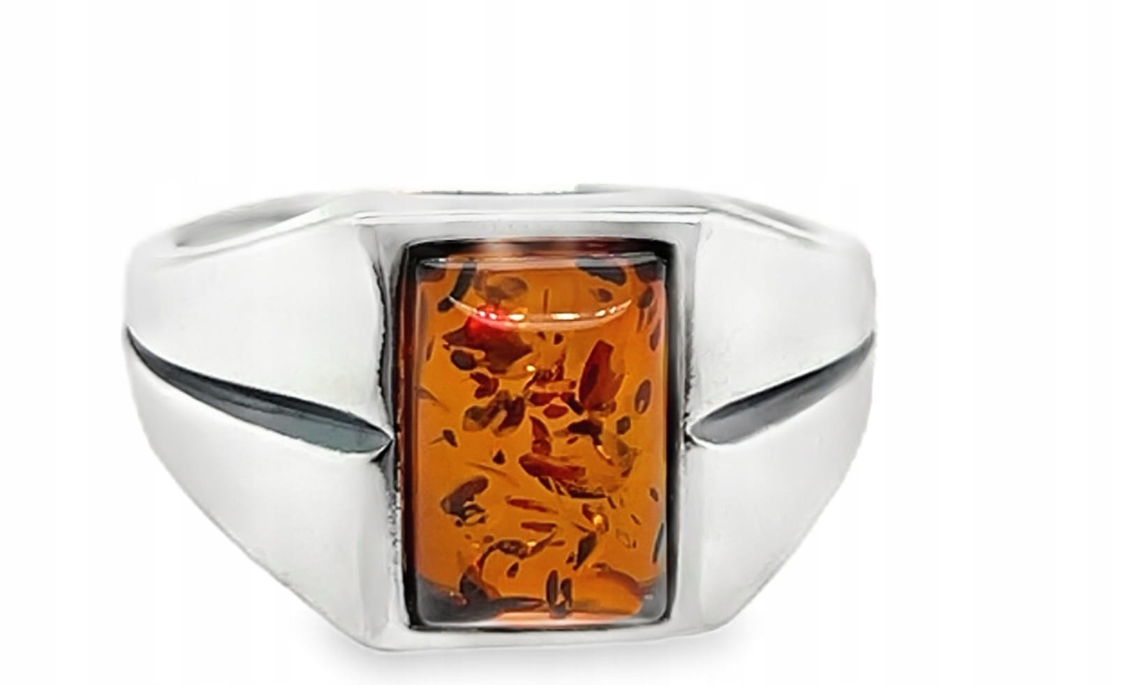 SYGNET MĘSKI srebrny z bursztynem SREBRO 925 rozmiar 27 PIERŚCIEŃ FILM