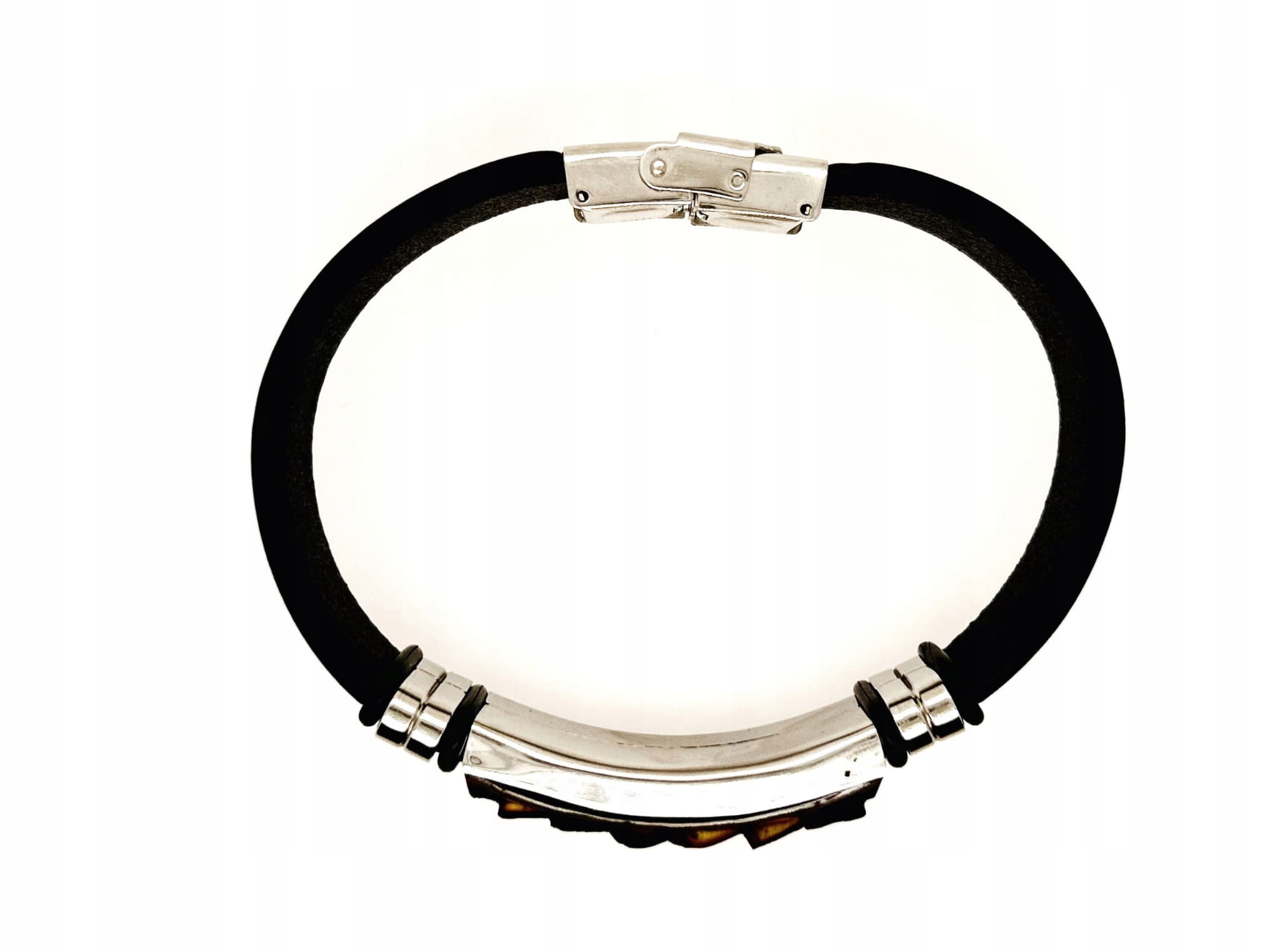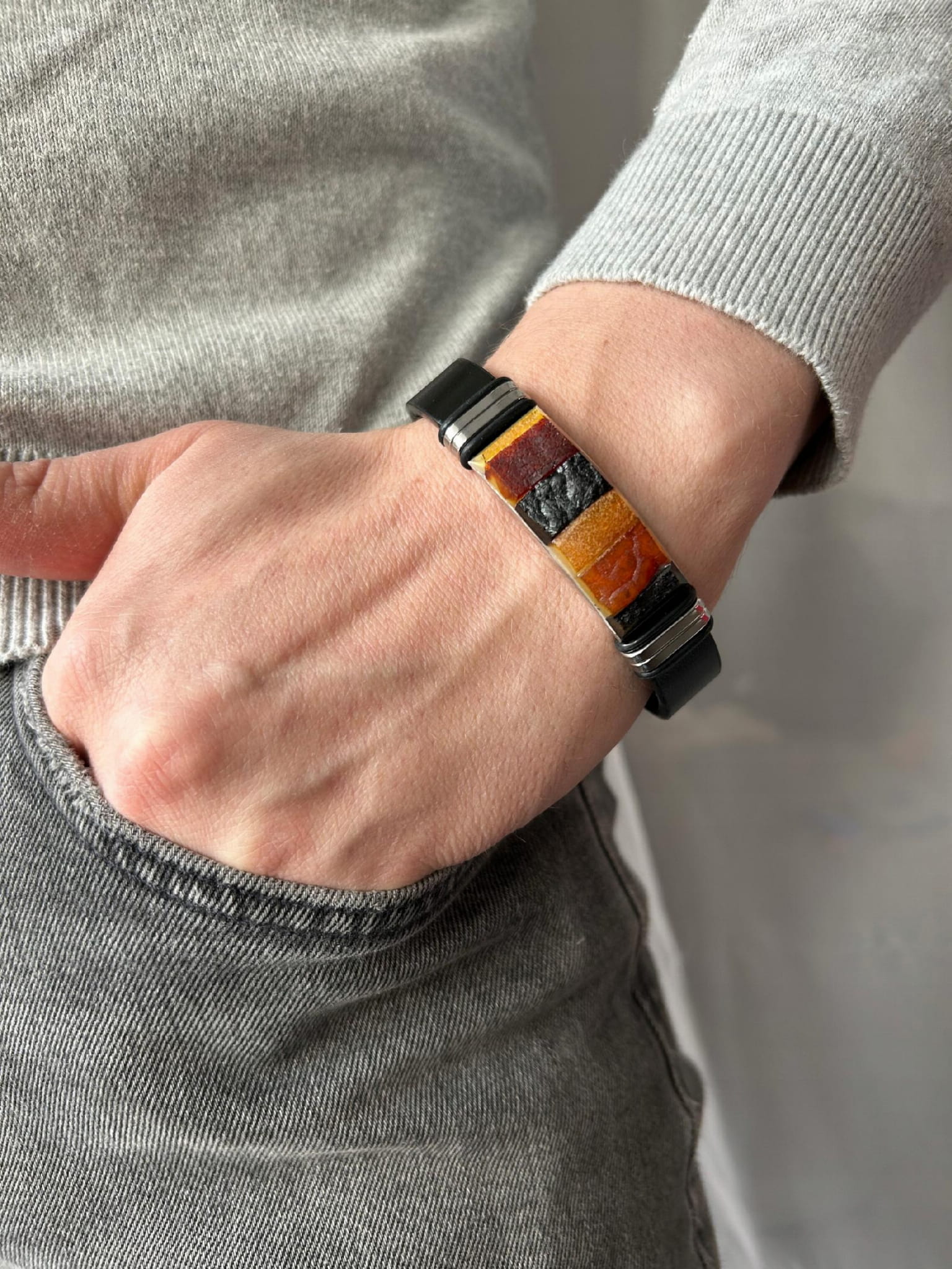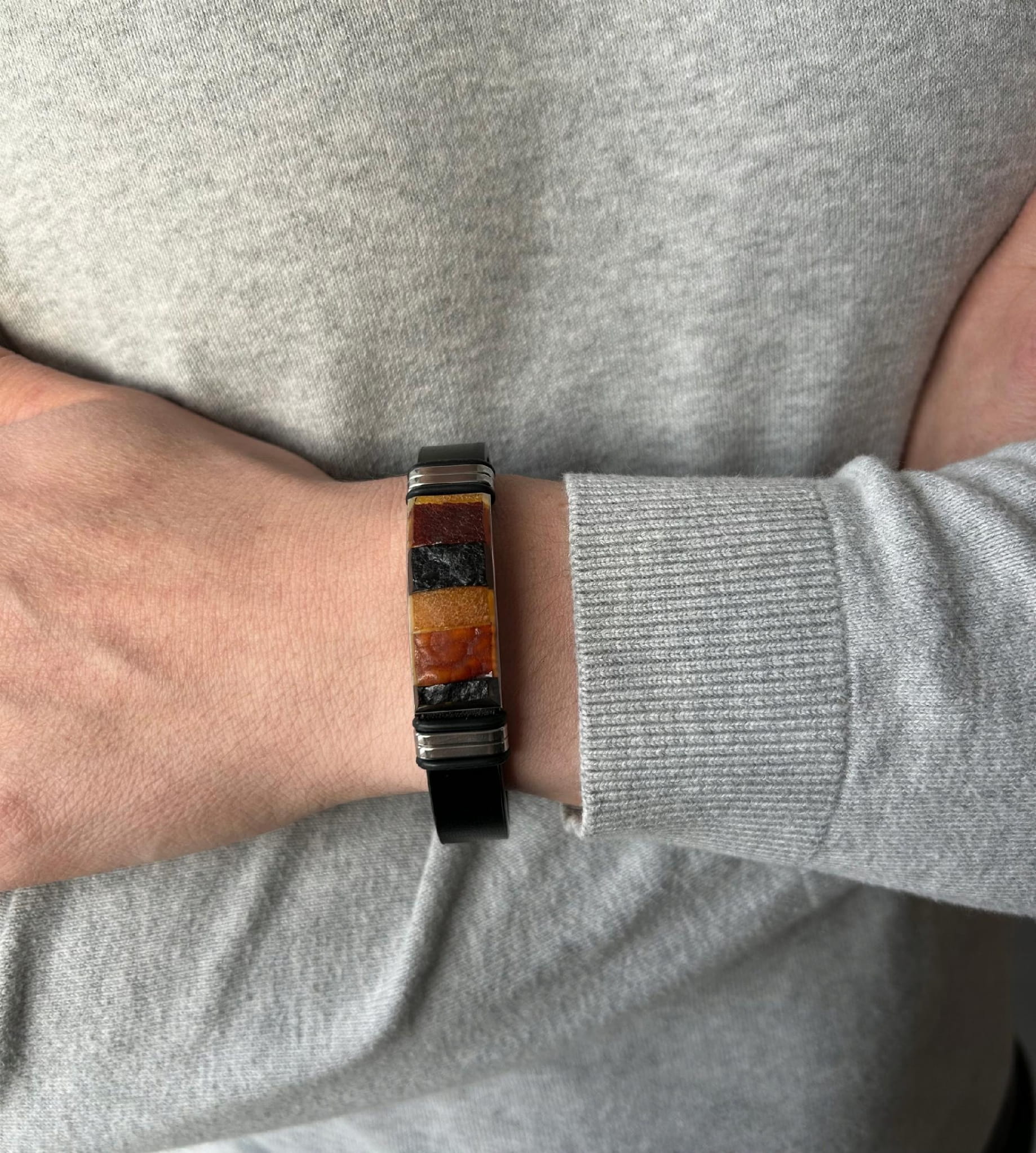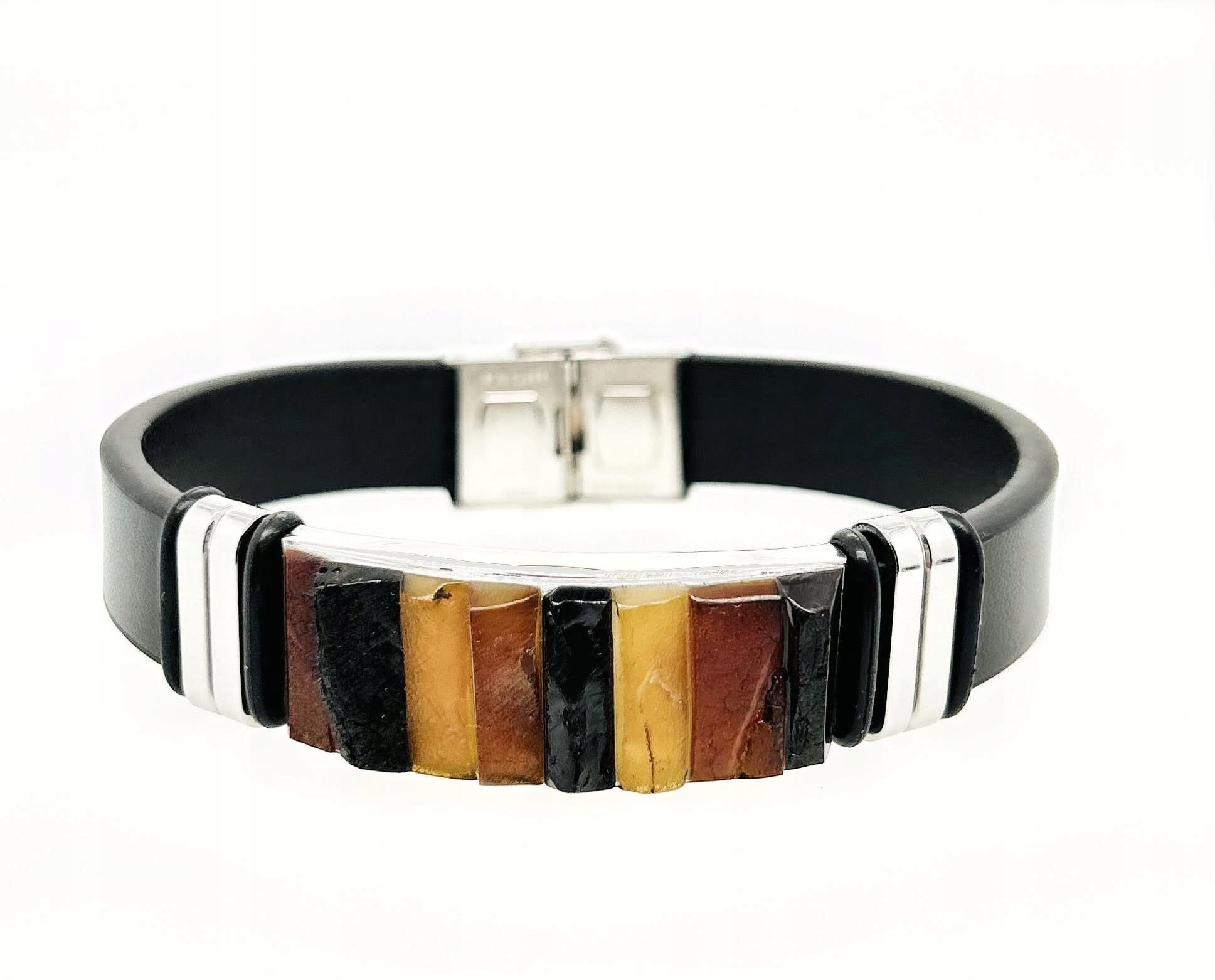 MĘSKA BRANSOLETA BURSZTYN SKÓRA STAL ELEGANCKA
