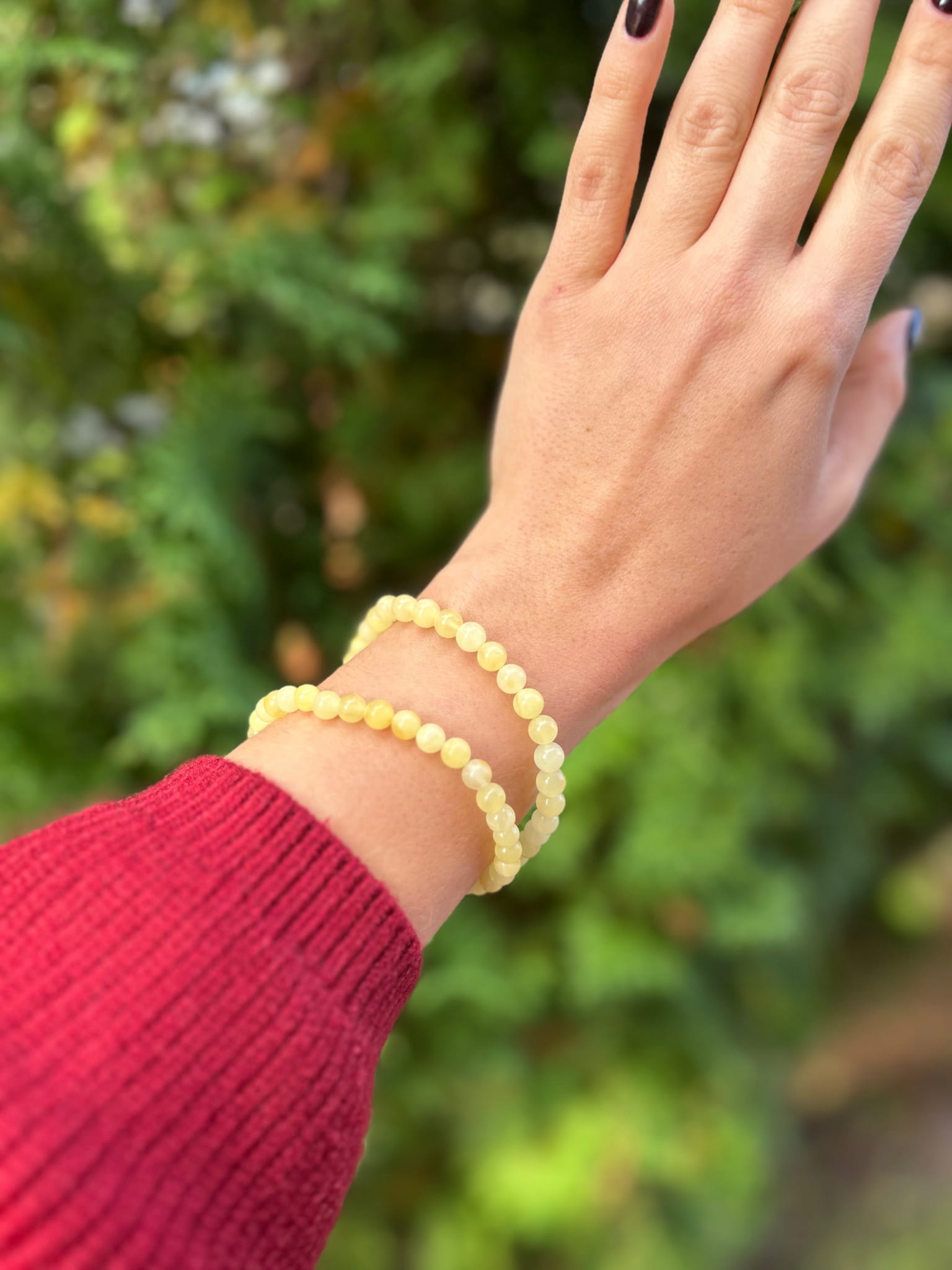 Bransoletka z naturalnego bursztynu bałtyckiego w kolorze koniaku na elastycznej gumce to delikatny i stylowy dodatek biżuteryjny.