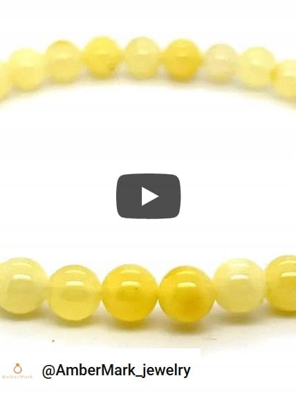 Bransoletka została wykonana z naturalnego bursztynu bałtyckiego o ciepłym odcieniu mlecznego.