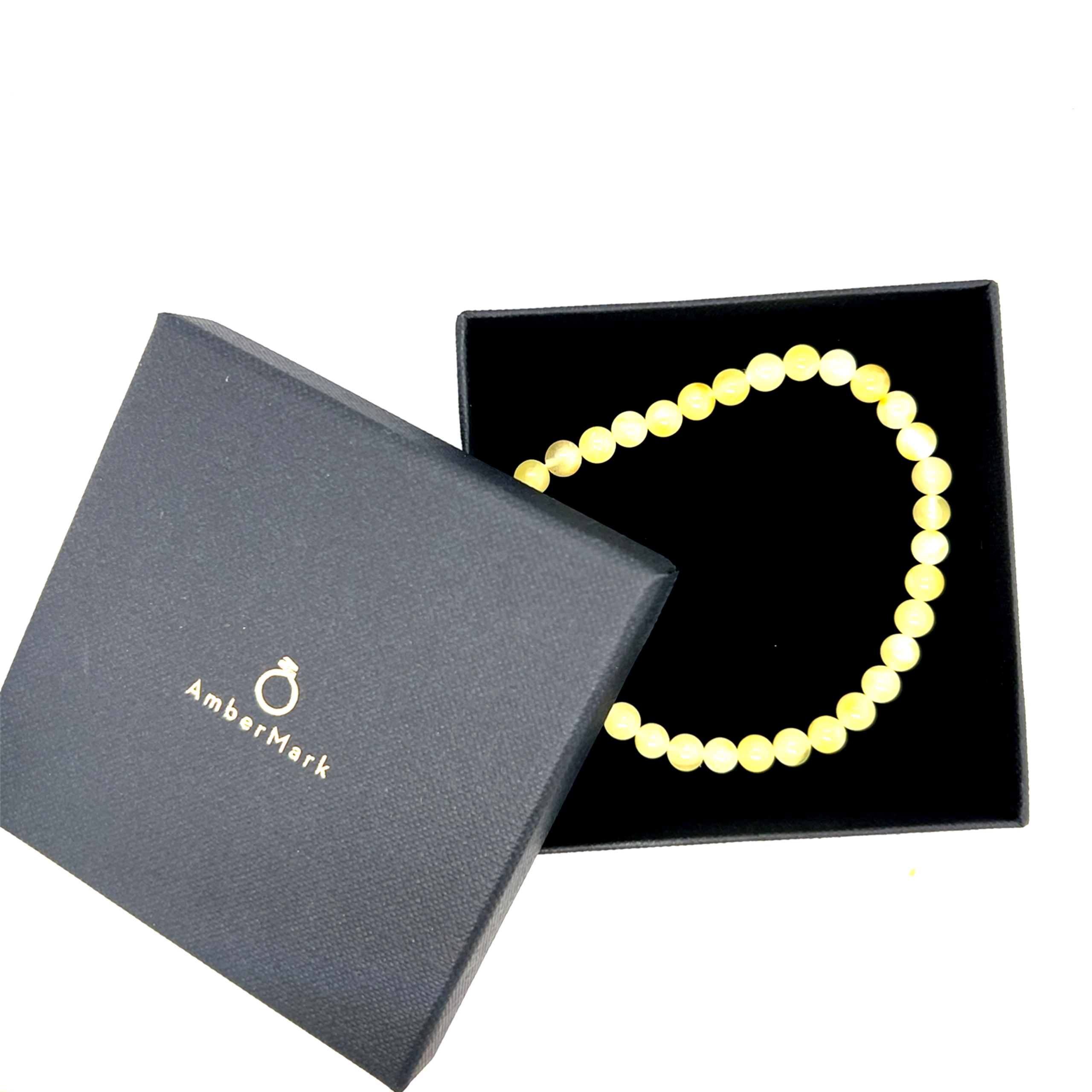 Bransoletka na gumce z naturalnego bursztynu bałtyckiego mleczny KULKA FILM