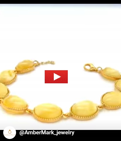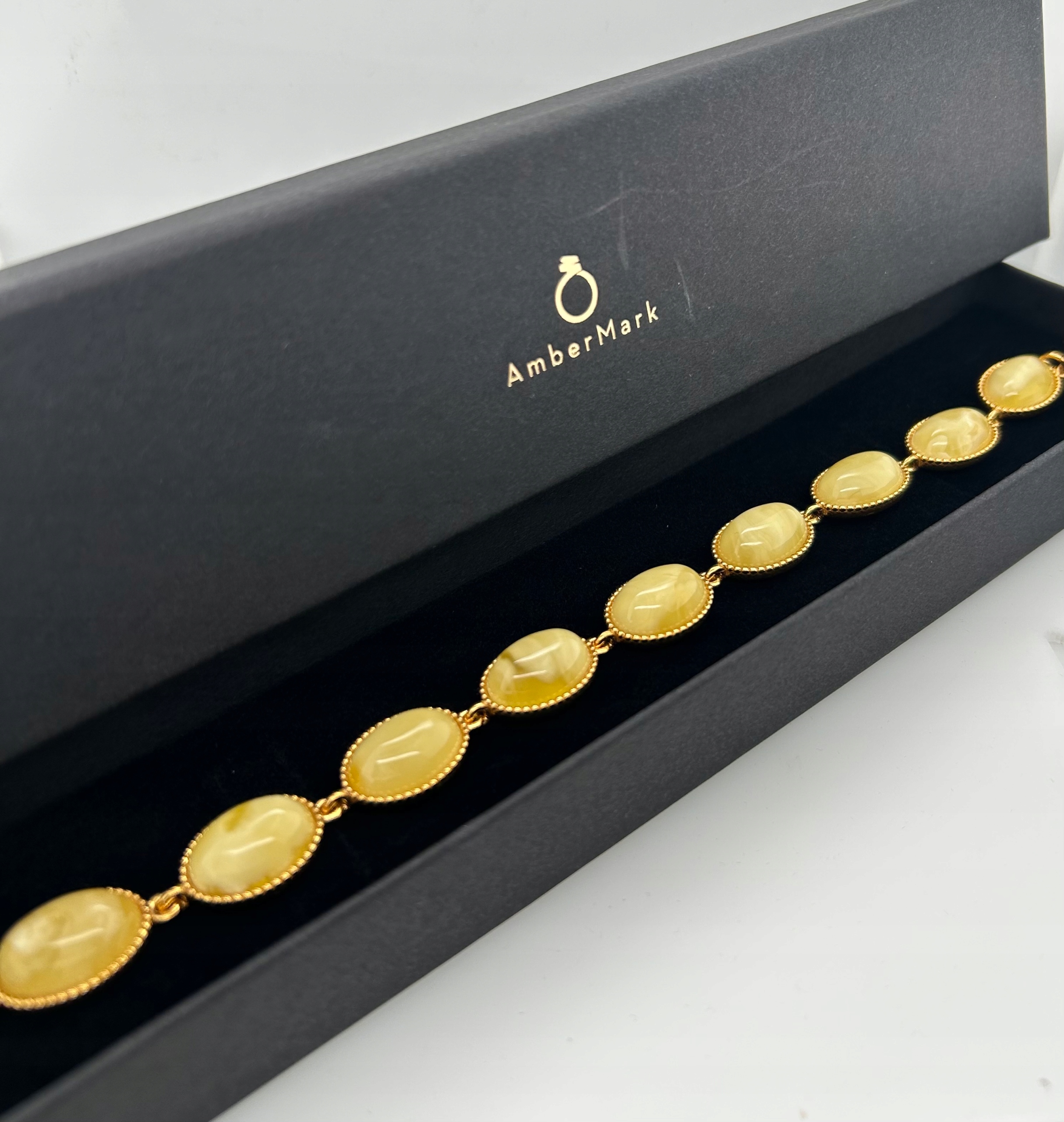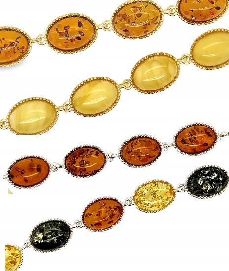 Bransoletka srebrna pozłacana z bursztynem BAŁTYCKIM