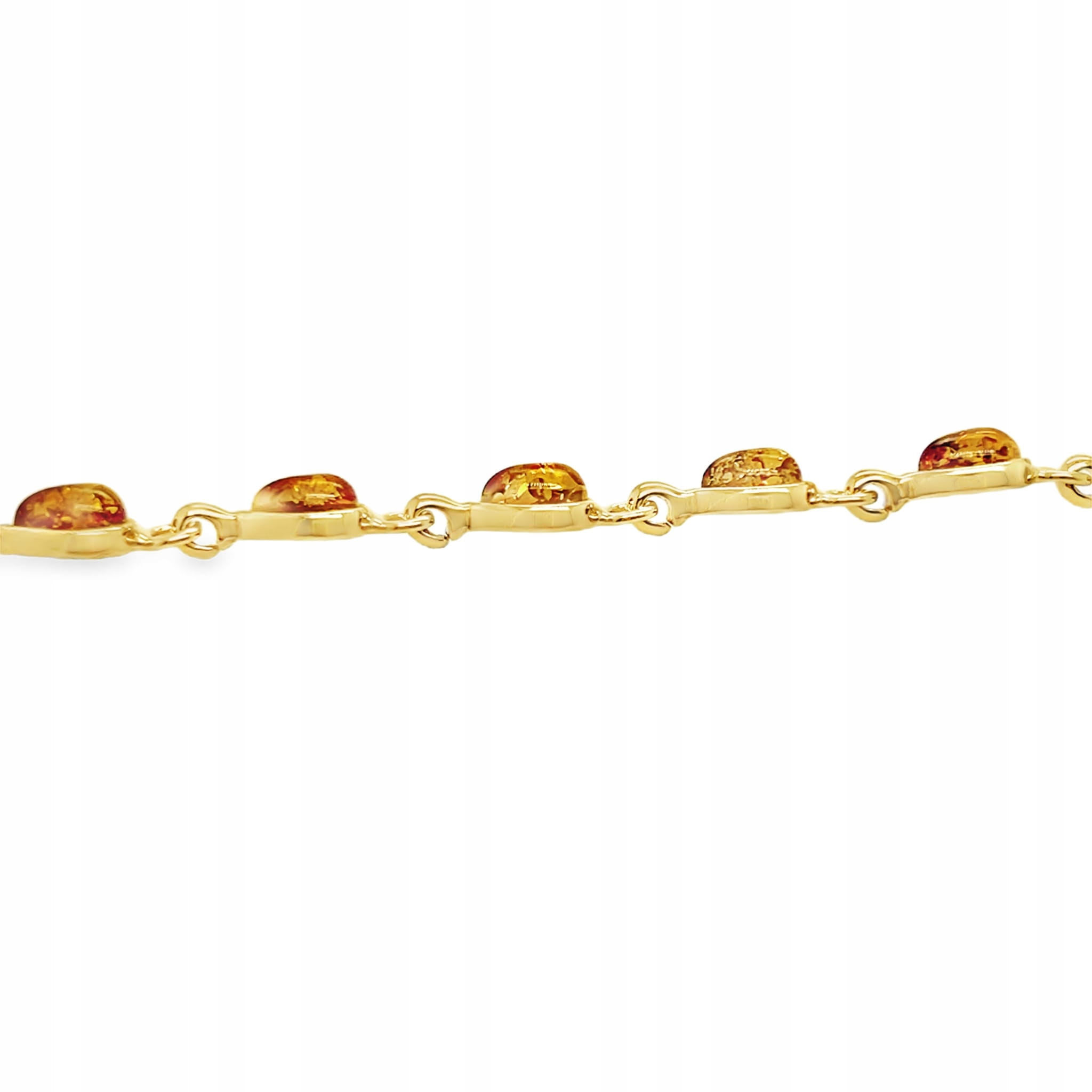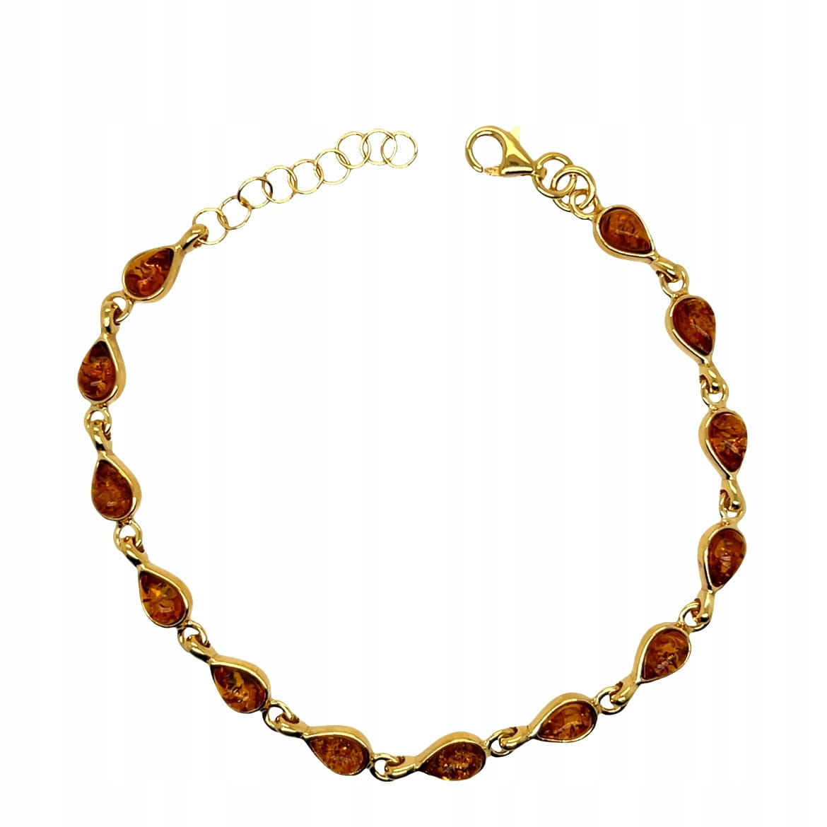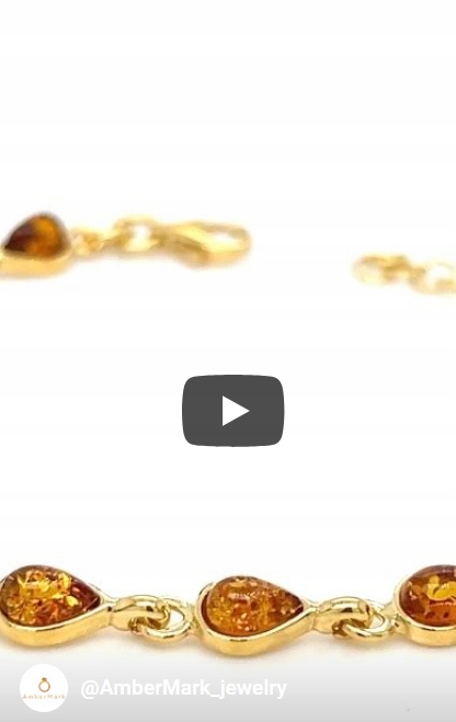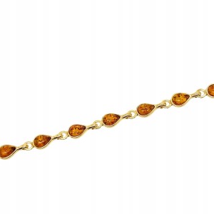 Bransoletka srebrna pozłacana z bursztynem ŁEZKI