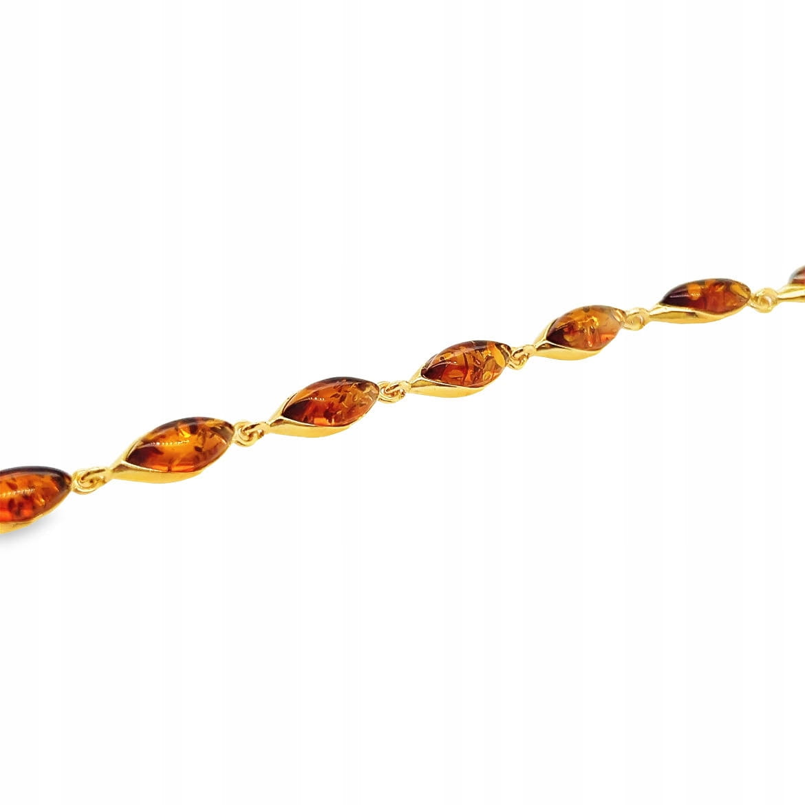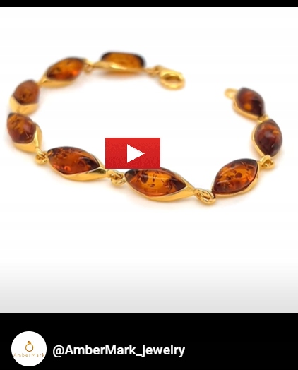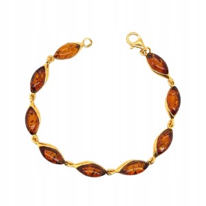 Bransoletka srebrna pozłacana z bursztynem MARKIZA