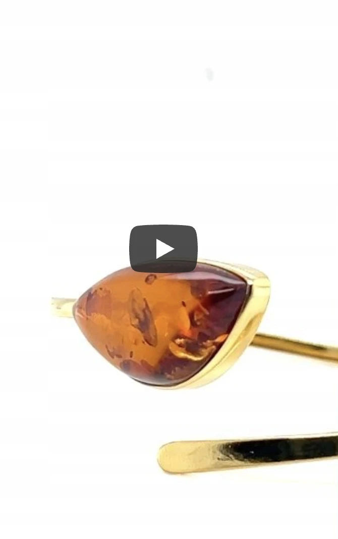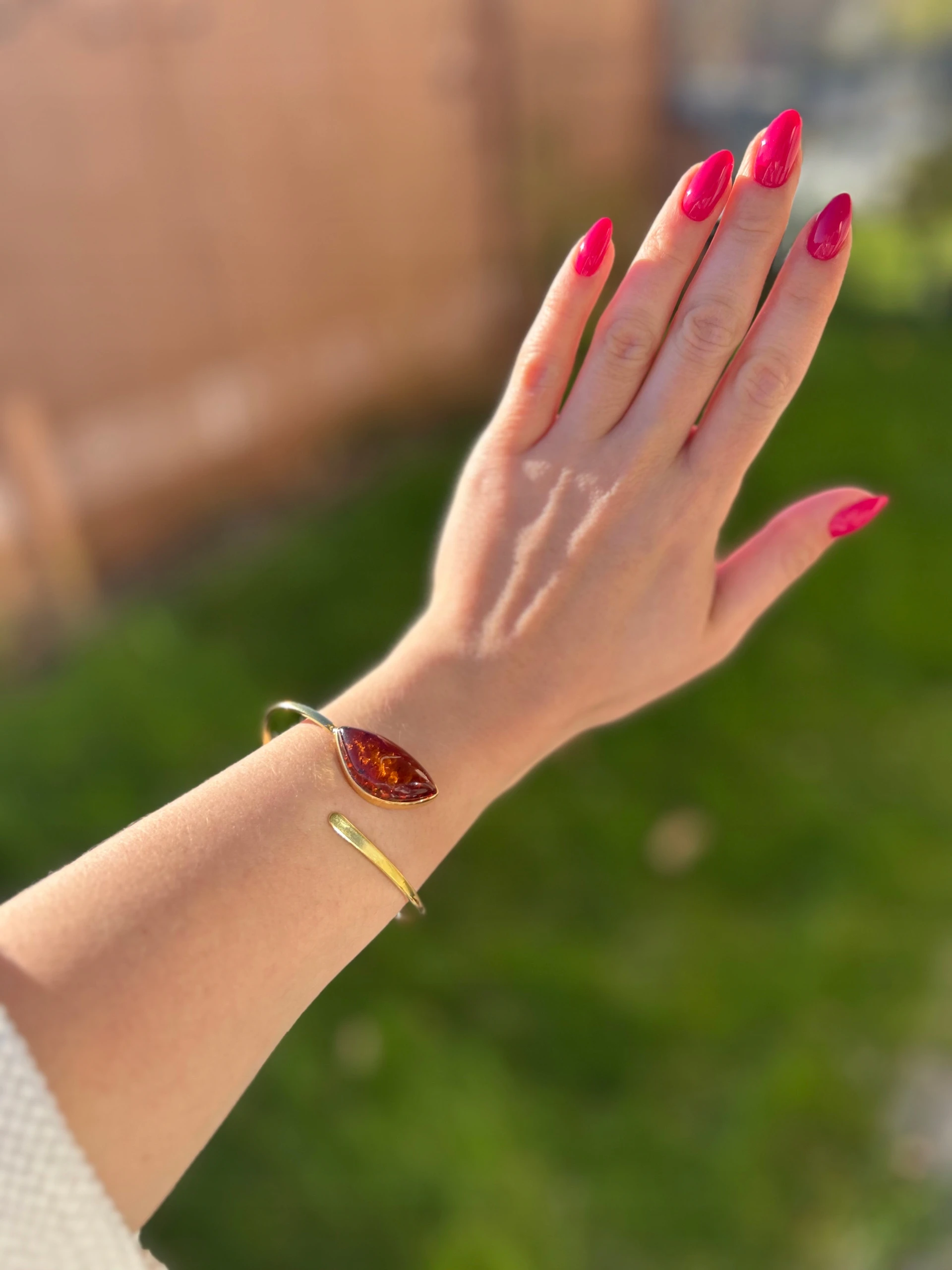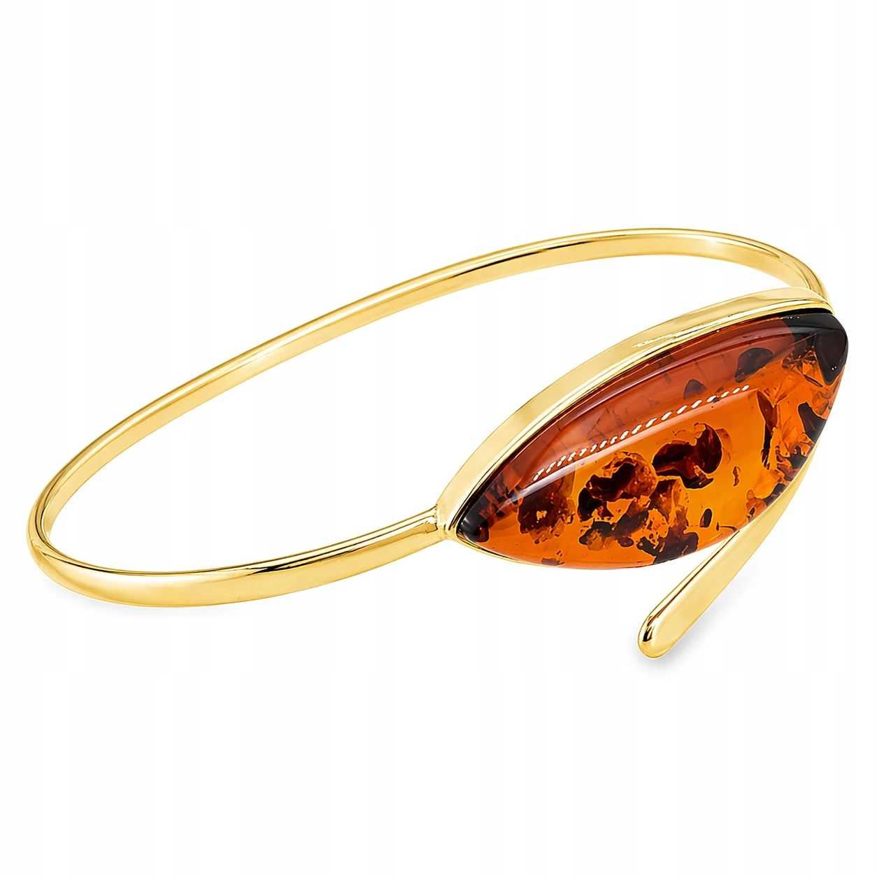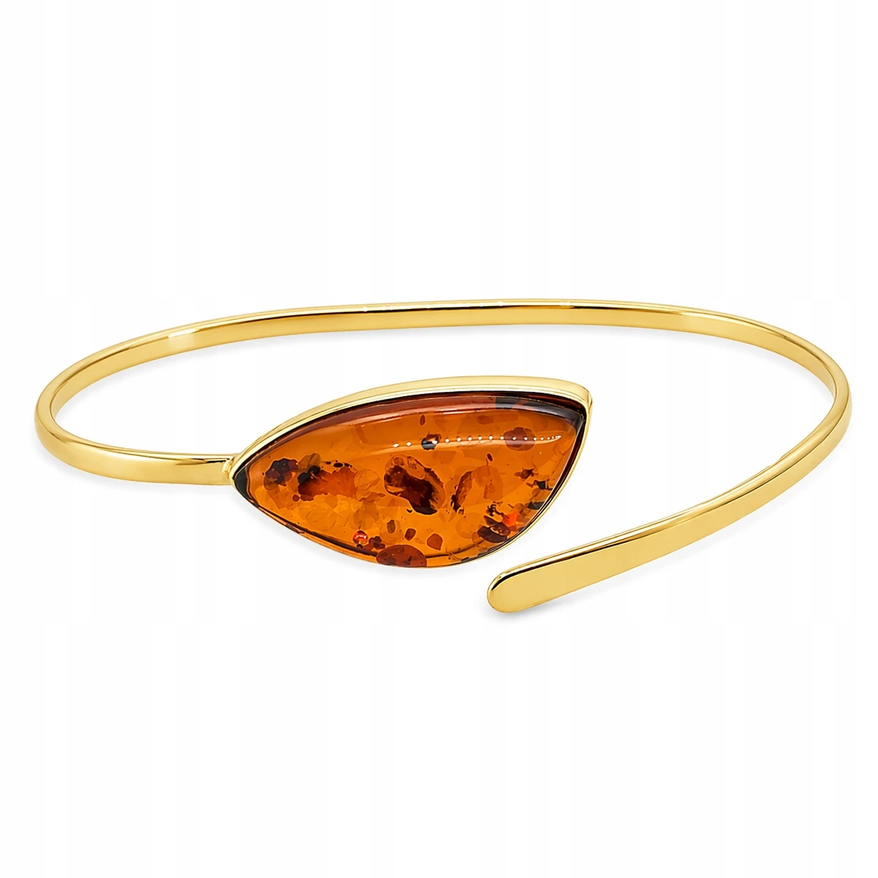 ✔️ Elegancka bransoletka wykonana ze srebra, pozłocona czystym złotem ozdobiona naturalnym bursztynem o wyjątkowej koniakowej barwie.