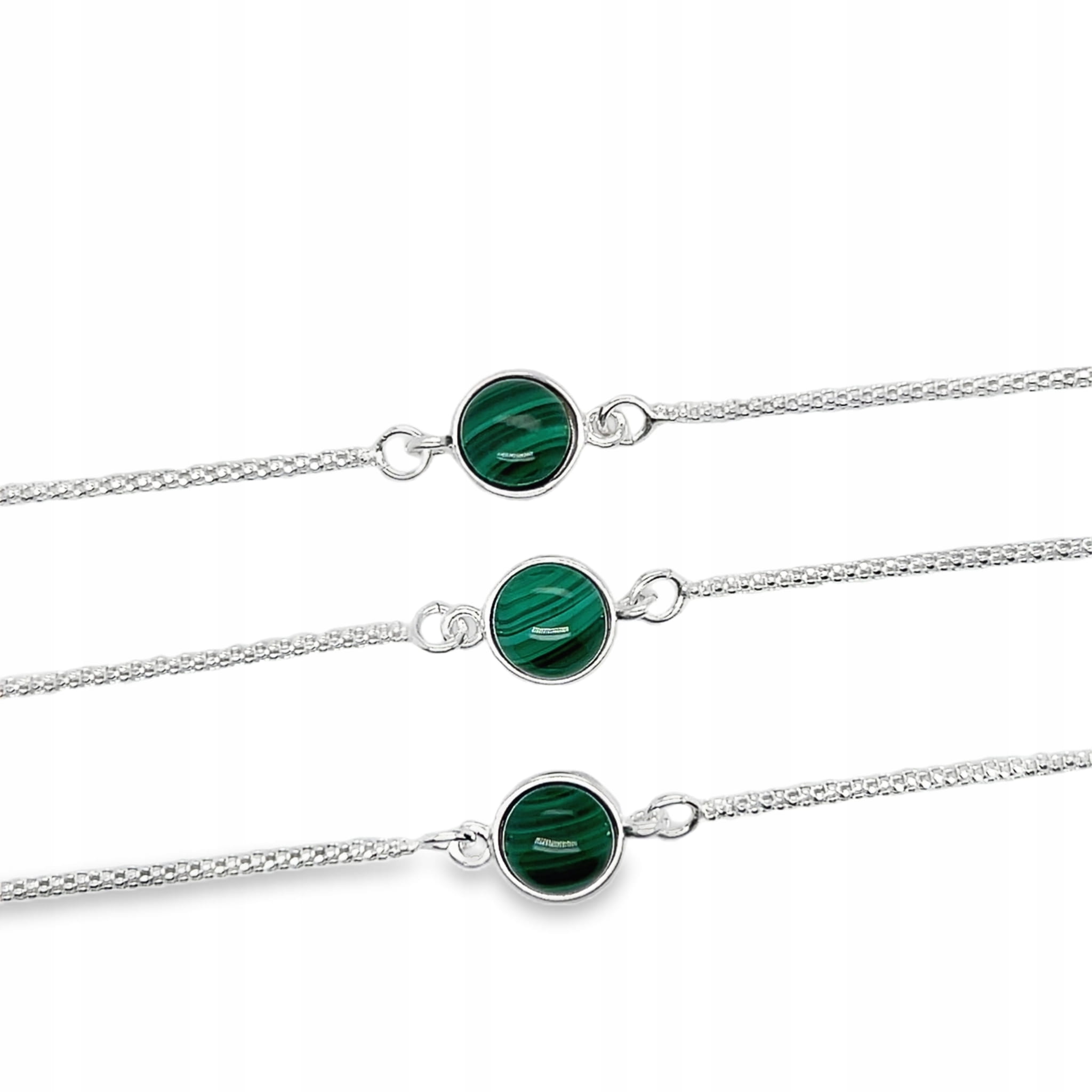 ✔️ Harmonia barw – głęboka zieleń naturalnego malachitu pięknie kontrastuje z lśniącym srebrem próby 925, tworząc ponadczasowe połączenie.