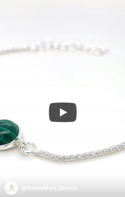 WAŻNE: Malachit to dzieło natury. Każdy kamień posiada unikalny układ pasm, dlatego odcień i wzór Twojej bransoletki mogą nieznacznie różnić się od modelu prezentowanego na zdjęciu.