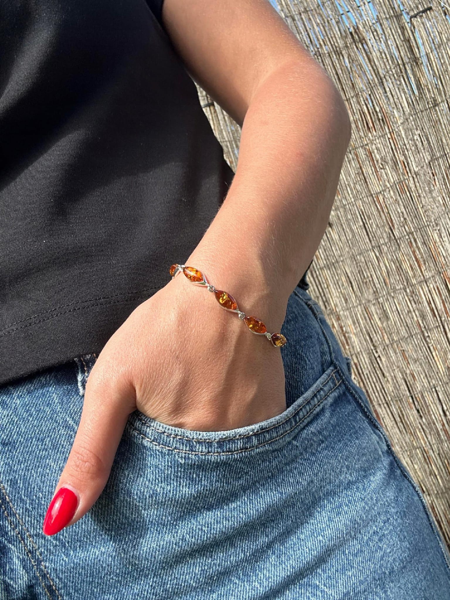 Bransoletka srebrna z bursztynem MARKIZA