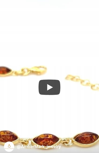 Bransoletka srebrna POZŁACANA z bursztynem naturalnym srebro delikatna FILM
