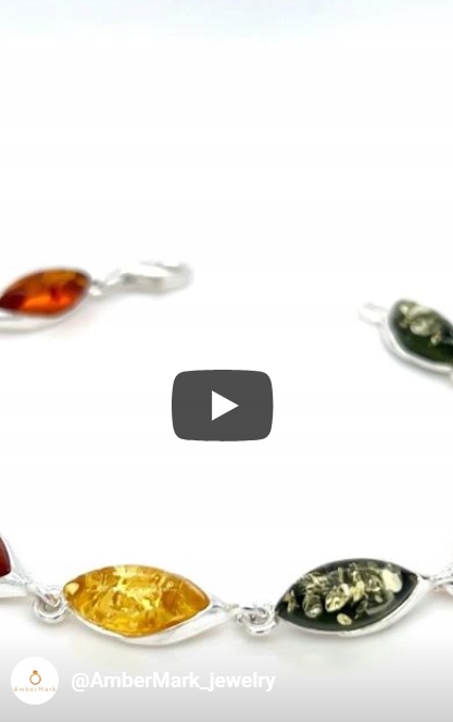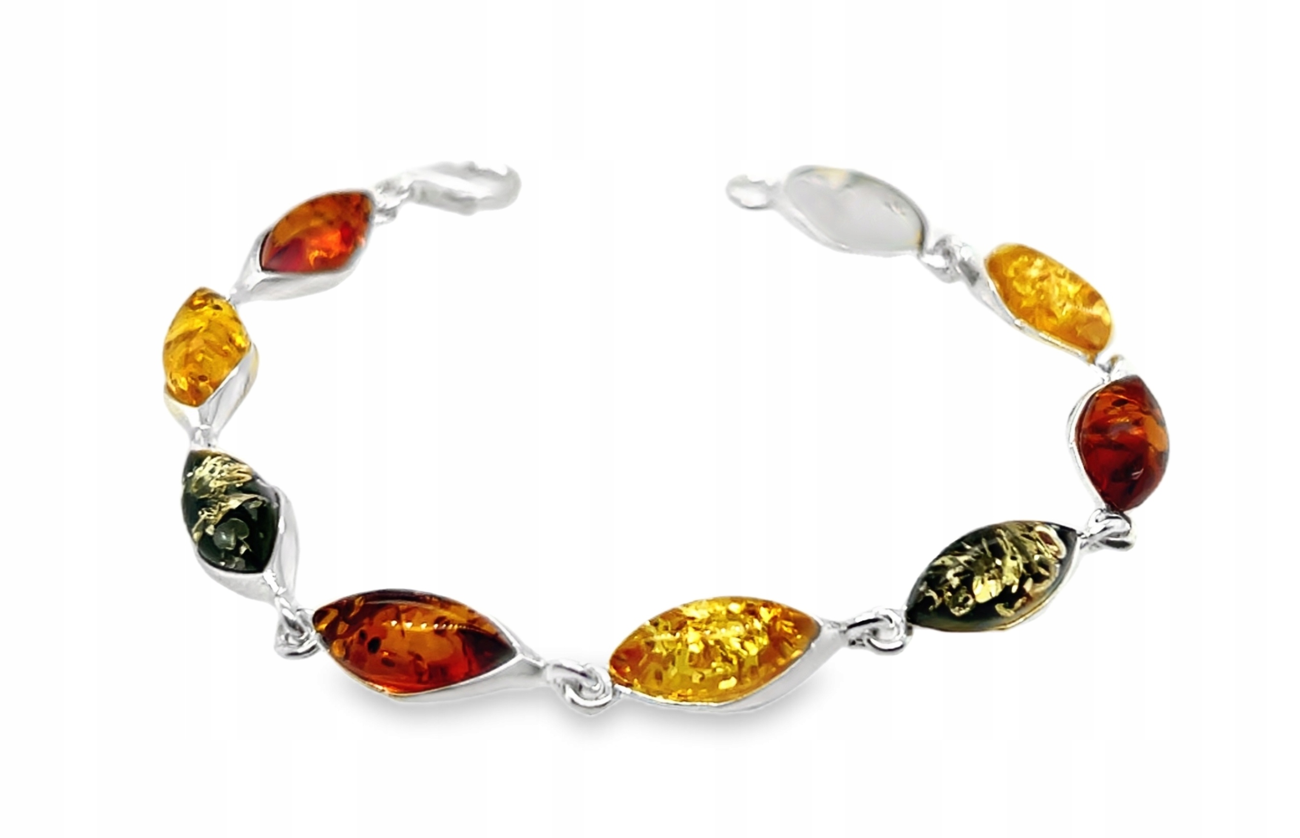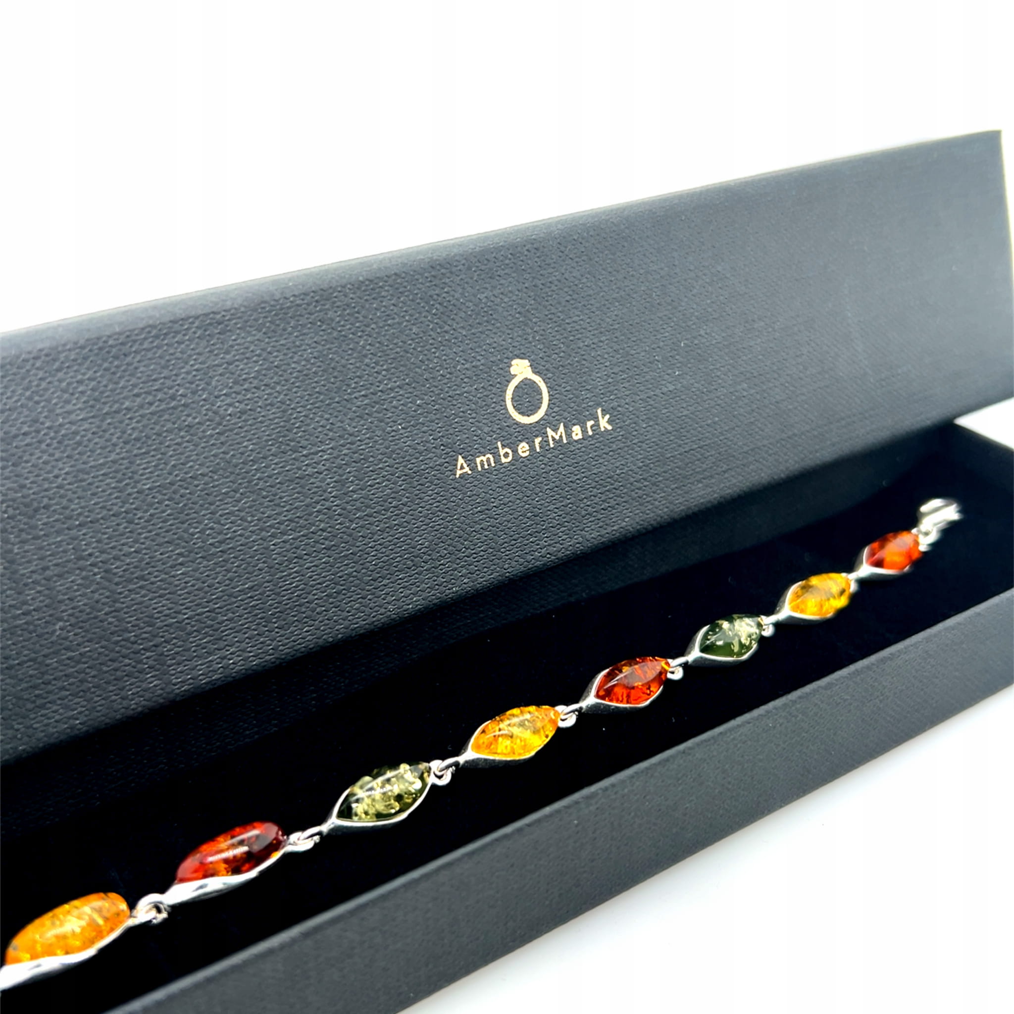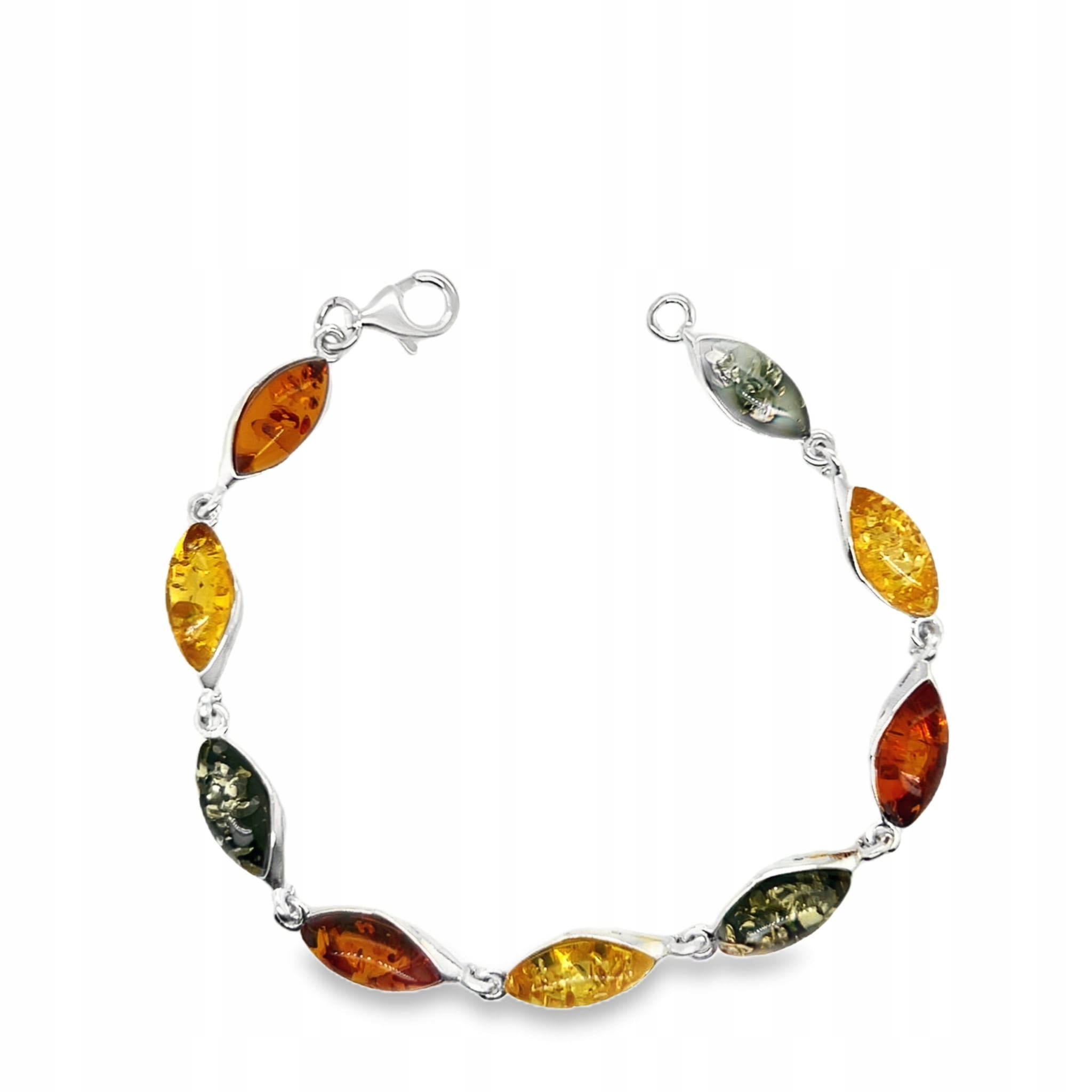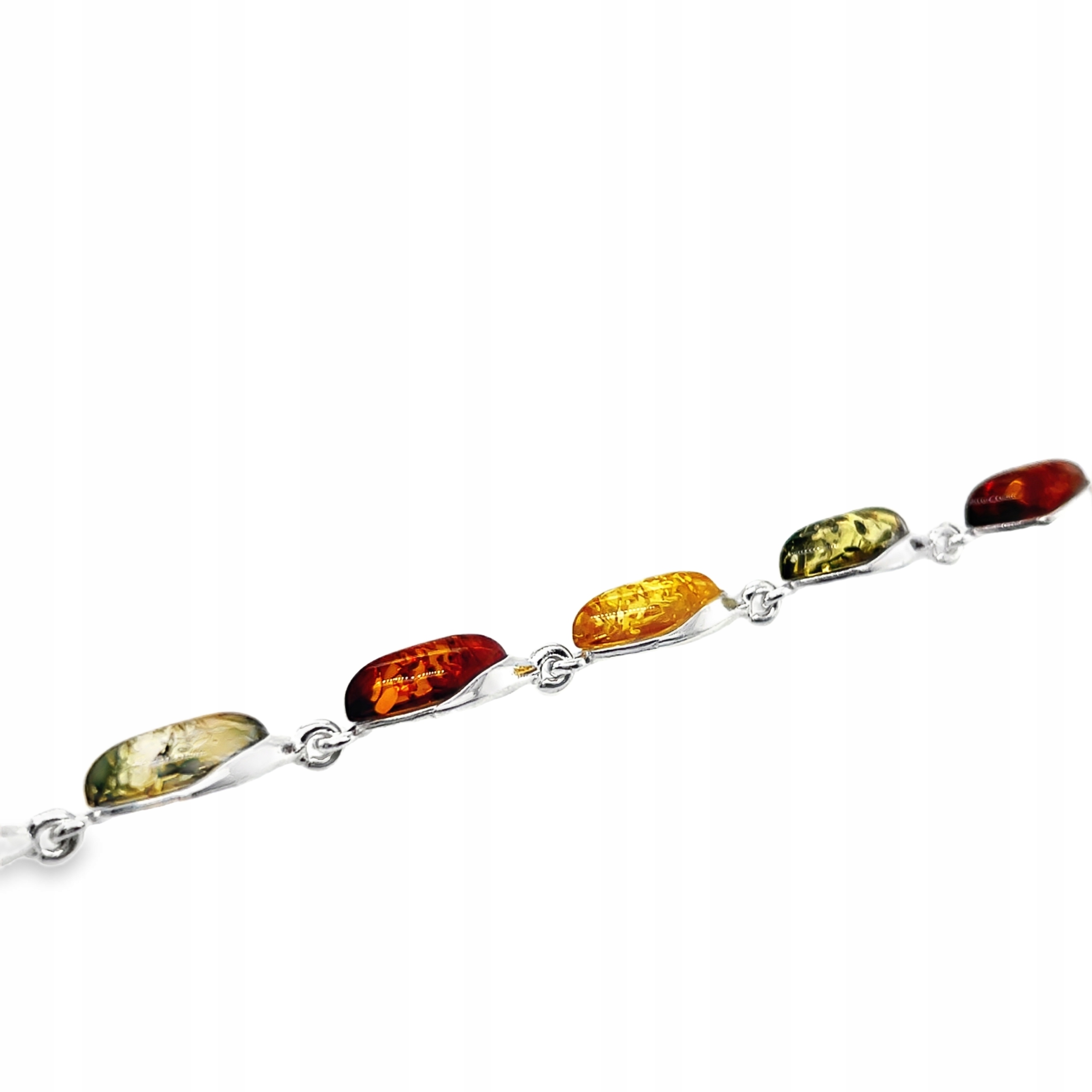 Bransoletka srebrna z bursztynem bałtyckim kolorowa MARKIZA srebro 925 FILM