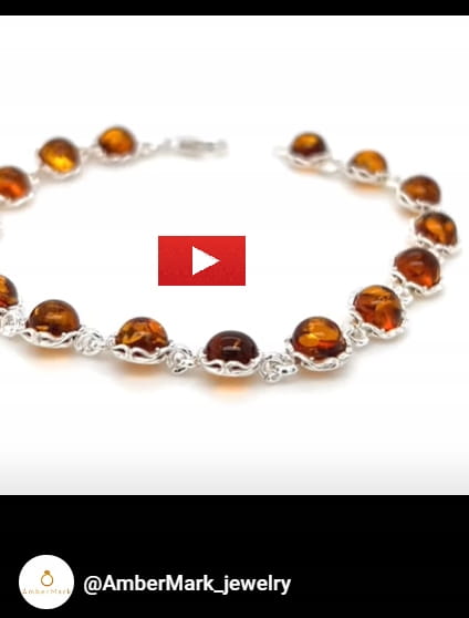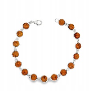 Bransoletka srebrna z bursztynem delikatna koniakowa FILM SREBRO 925