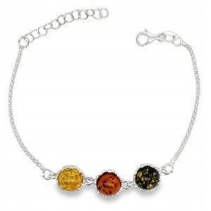 Bransoletka srebrna z bursztynem OCZKA