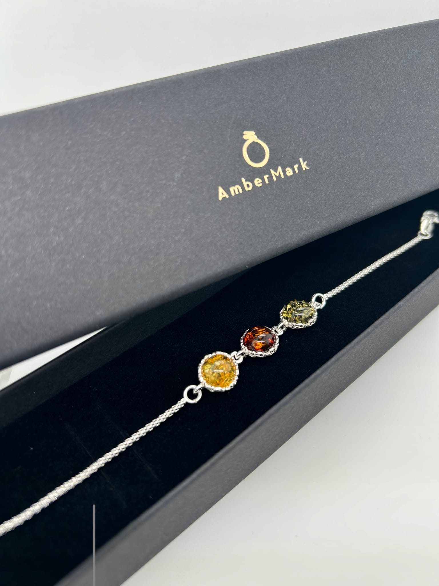 ✔️ Elegancka bransoletka wykonana ze srebra, ozdobiona naturalnym bursztynem o wyjątkowej barwie.