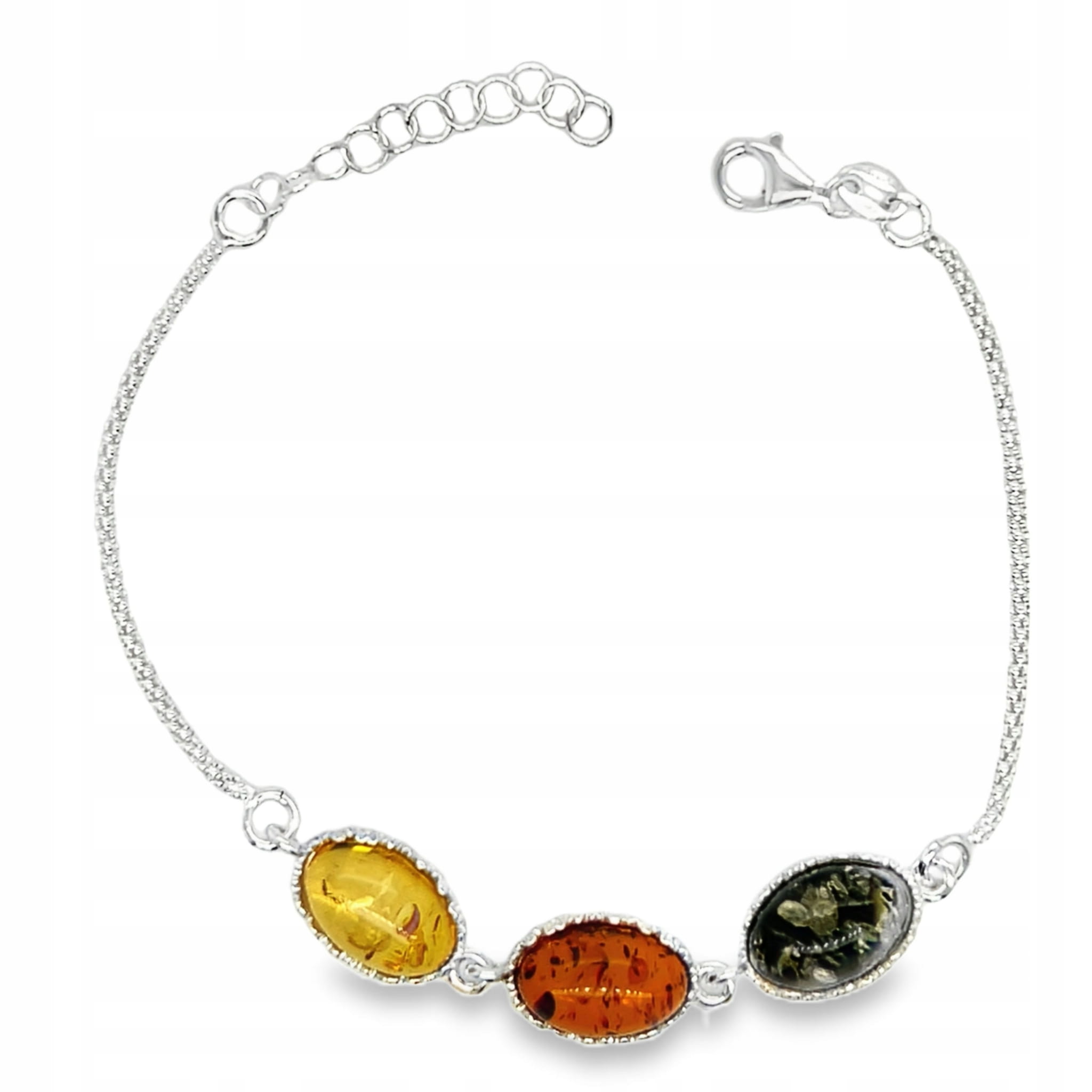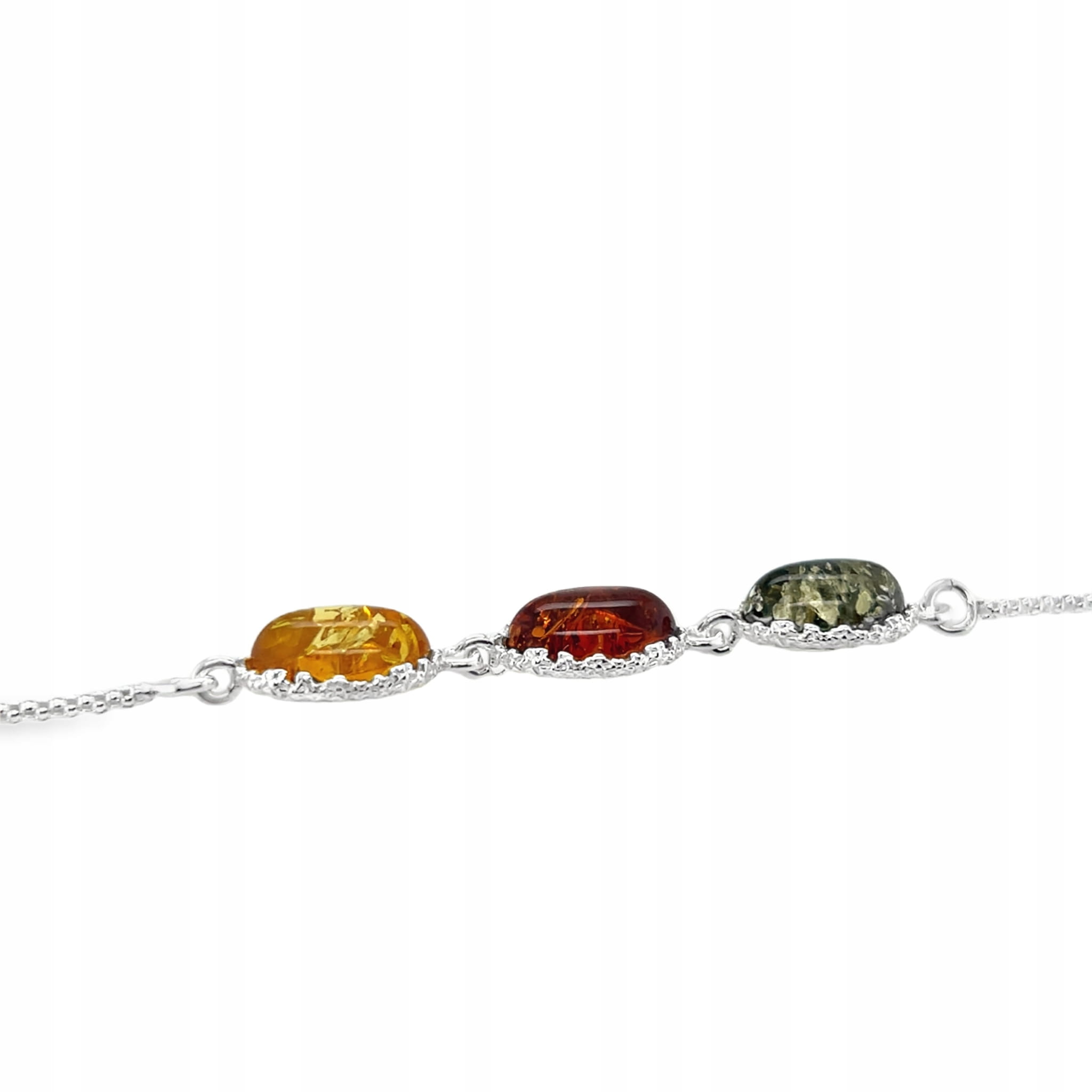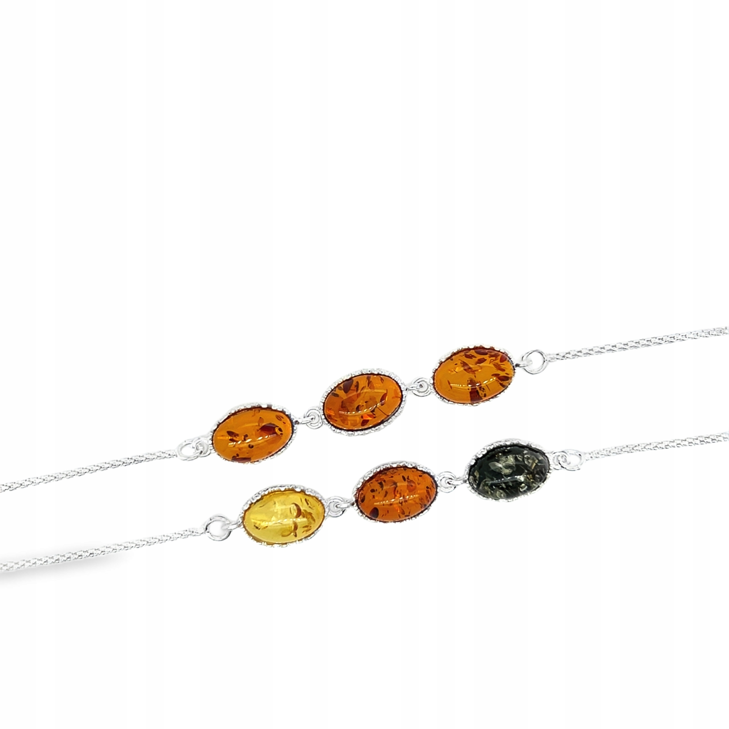 Bransoletka DELIKATNA srebrna z bursztynem koniakowy zielony cytrynowy FILM