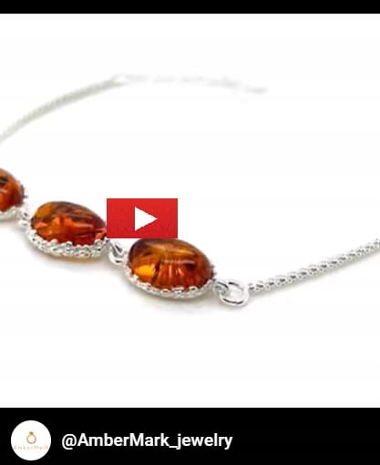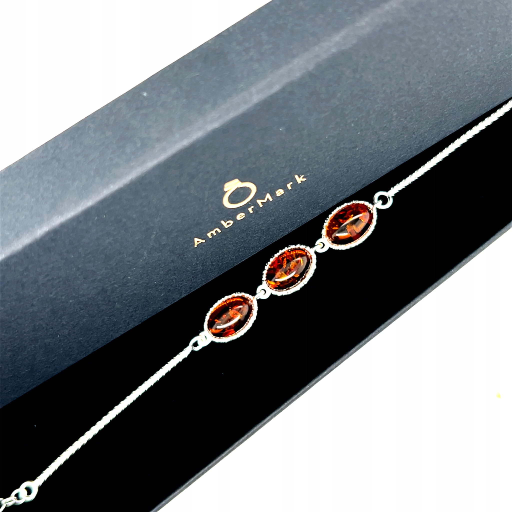 ✔️ Elegancka bransoletka wykonana ze srebra, ozdobiona naturalnym bursztynem o wyjątkowej barwie.