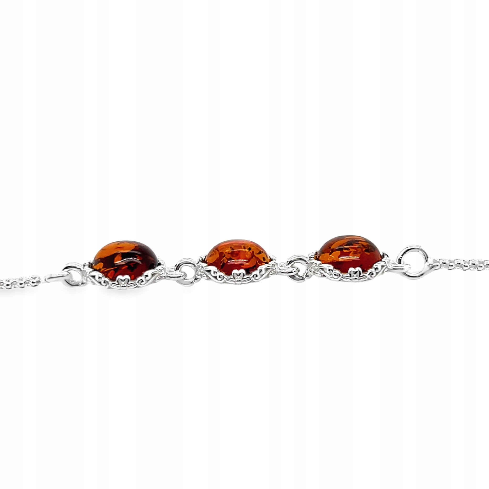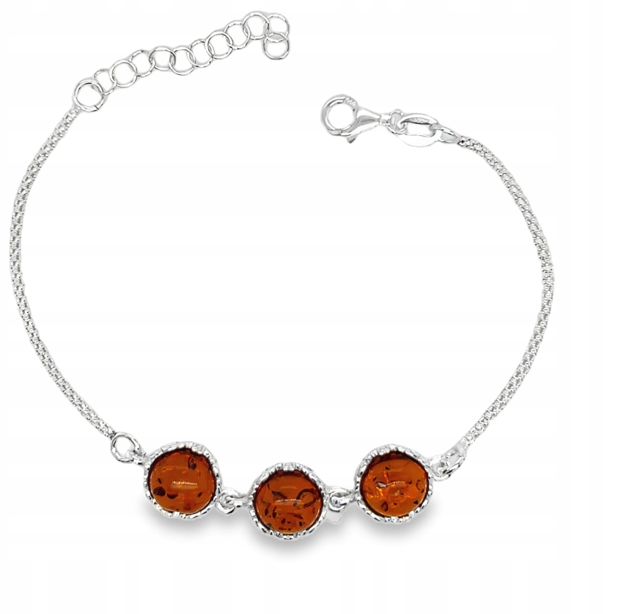 Bransoletka srebrna z bursztynem TRZY KAMIENIE