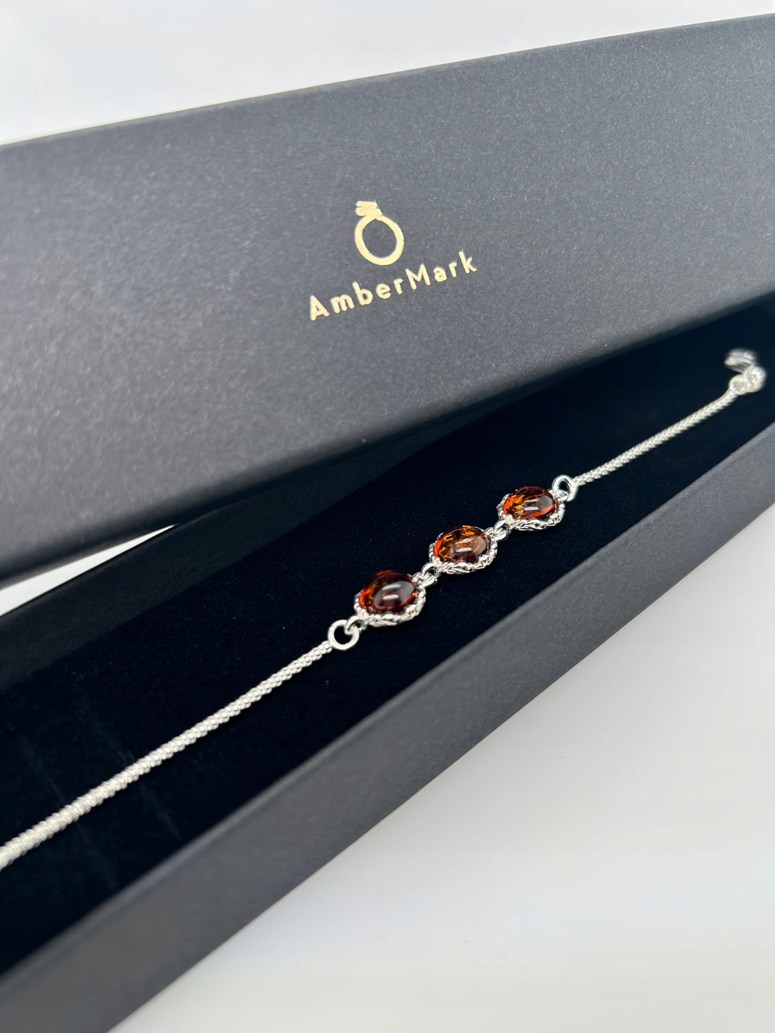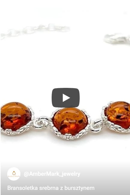 ✔️ Elegancka bransoletka wykonana ze srebra, ozdobiona naturalnym bursztynem o wyjątkowej barwie.
