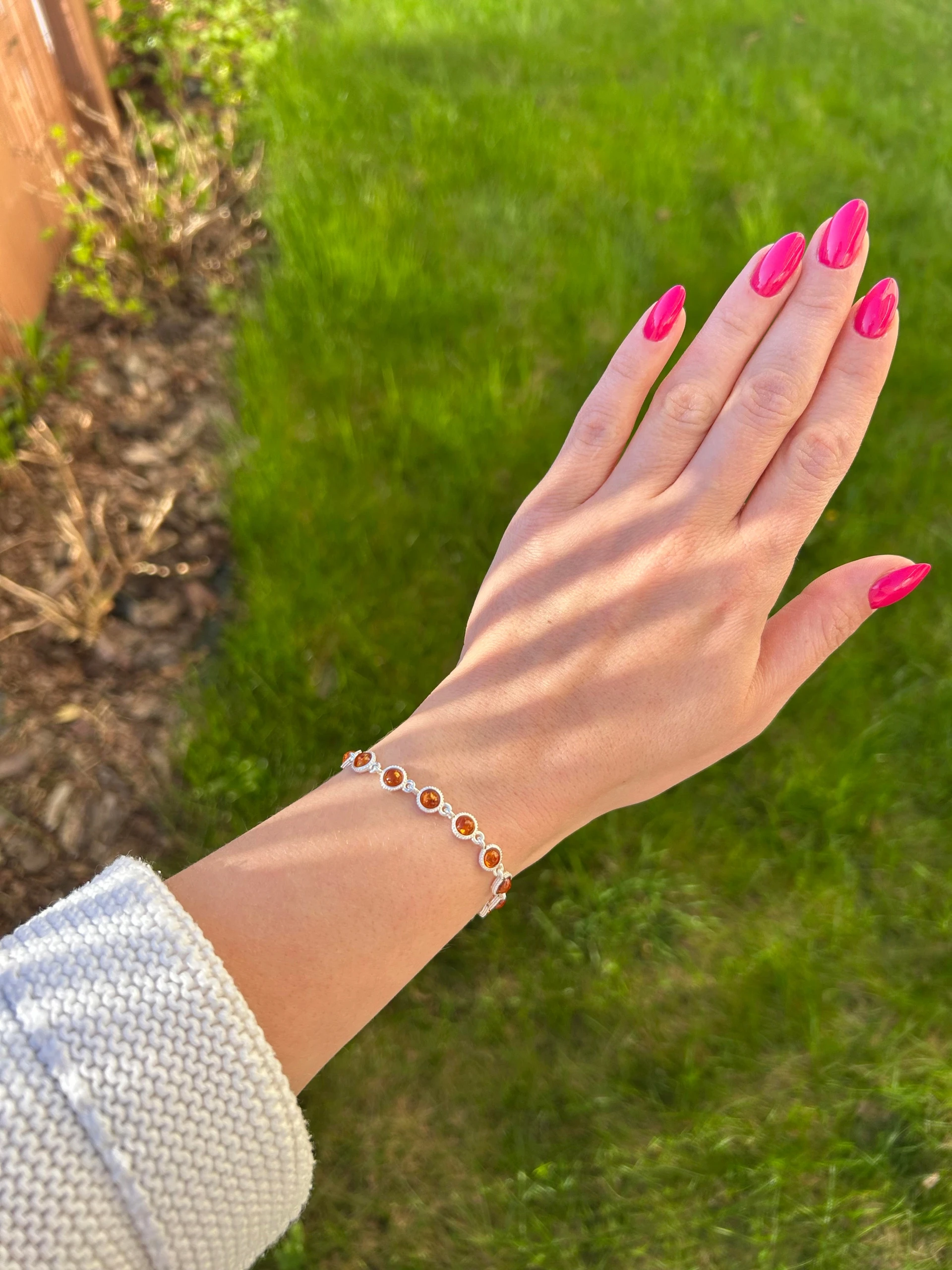✔️ Gładko polerowana powierzchnia bursztynu odbija światło, nadając bransoletce eleganckiego blasku i wyrazistości.