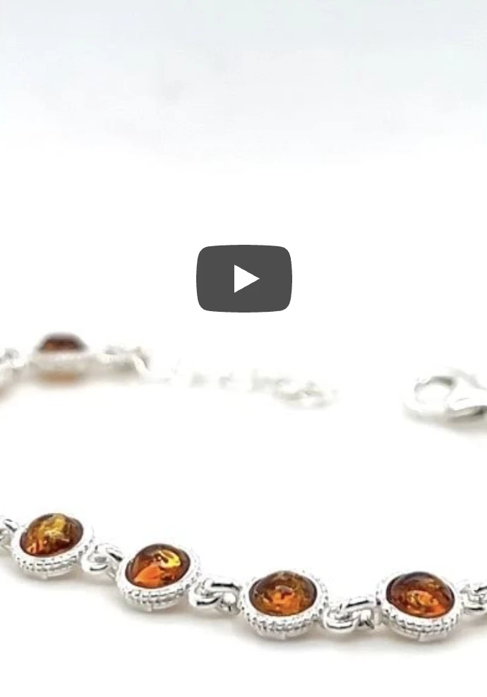✔️ Elegancka bransoletka wykonana ze srebra, ozdobiona naturalnym bursztynem o wyjątkowej koniakowej barwie.