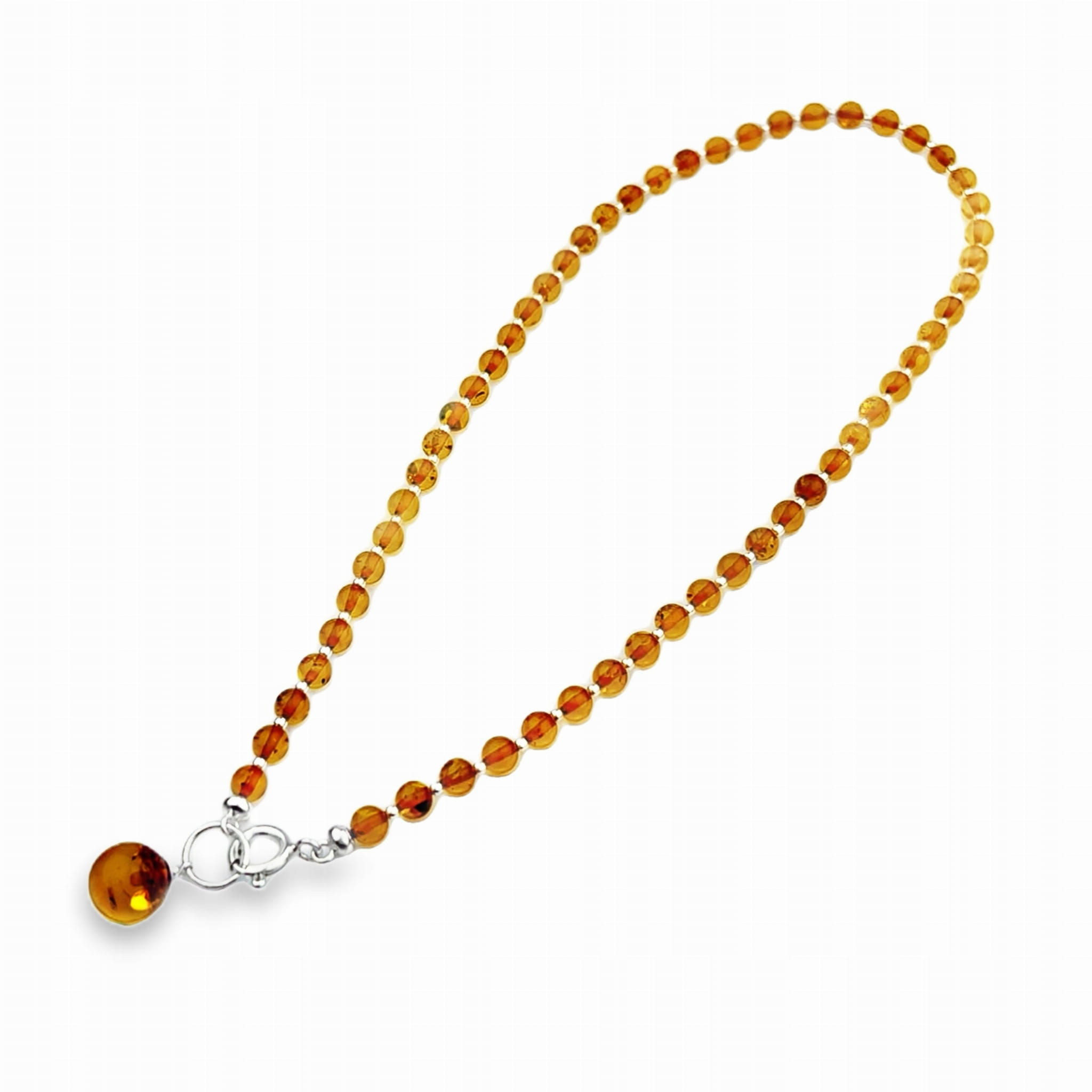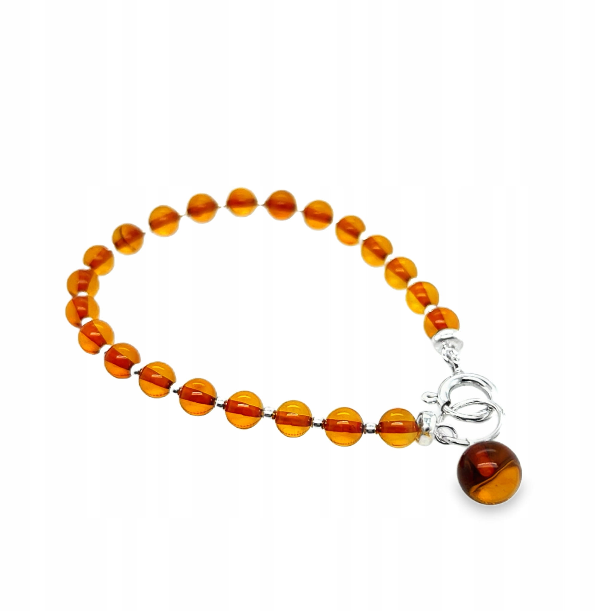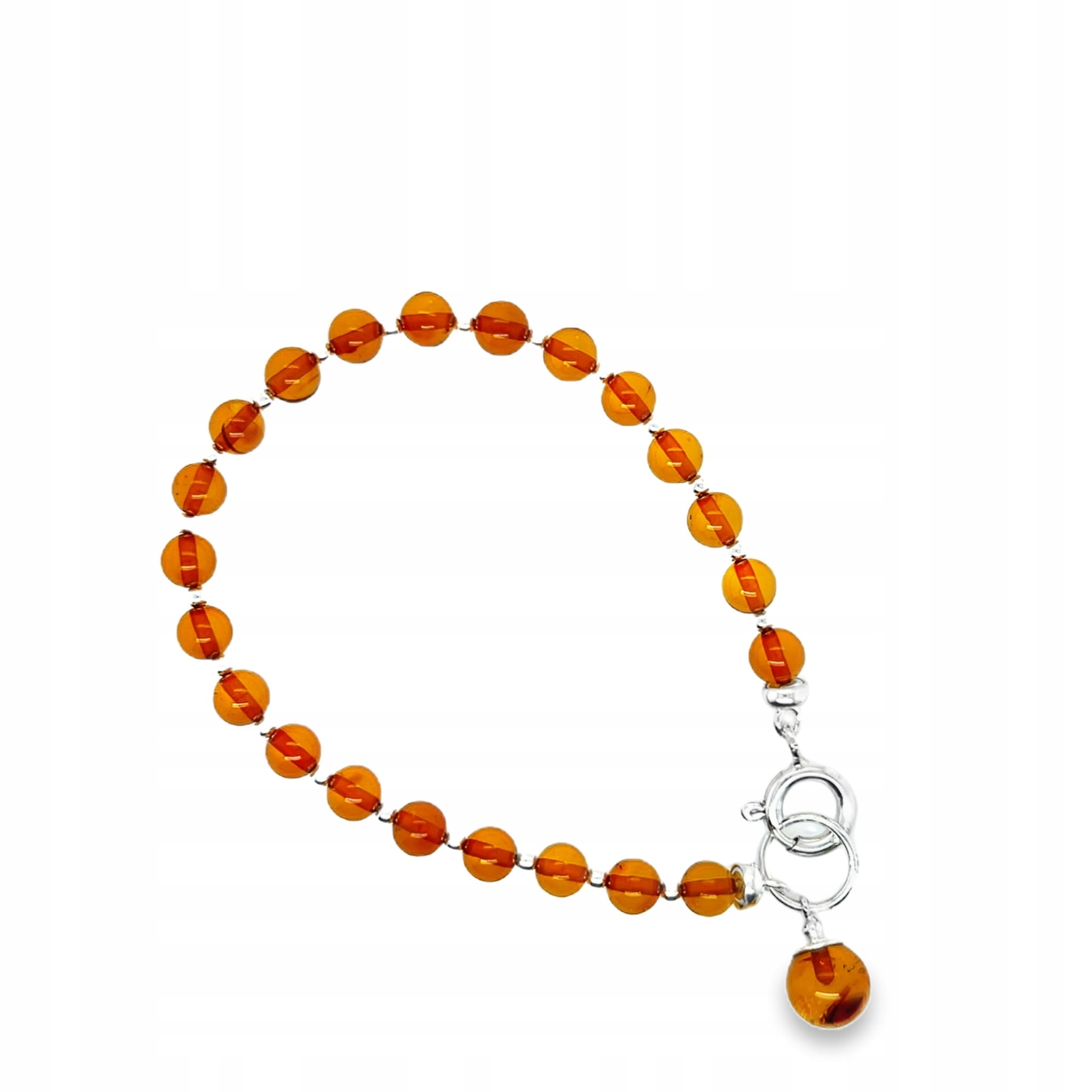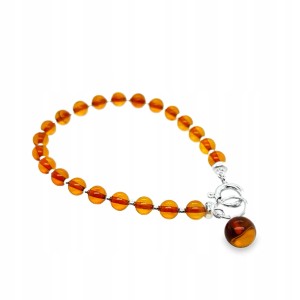 Bransoletka srebrna z bursztynem naturalnym KULKA