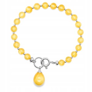 Bransoletka srebrna z bursztynem naturalnym KULKA