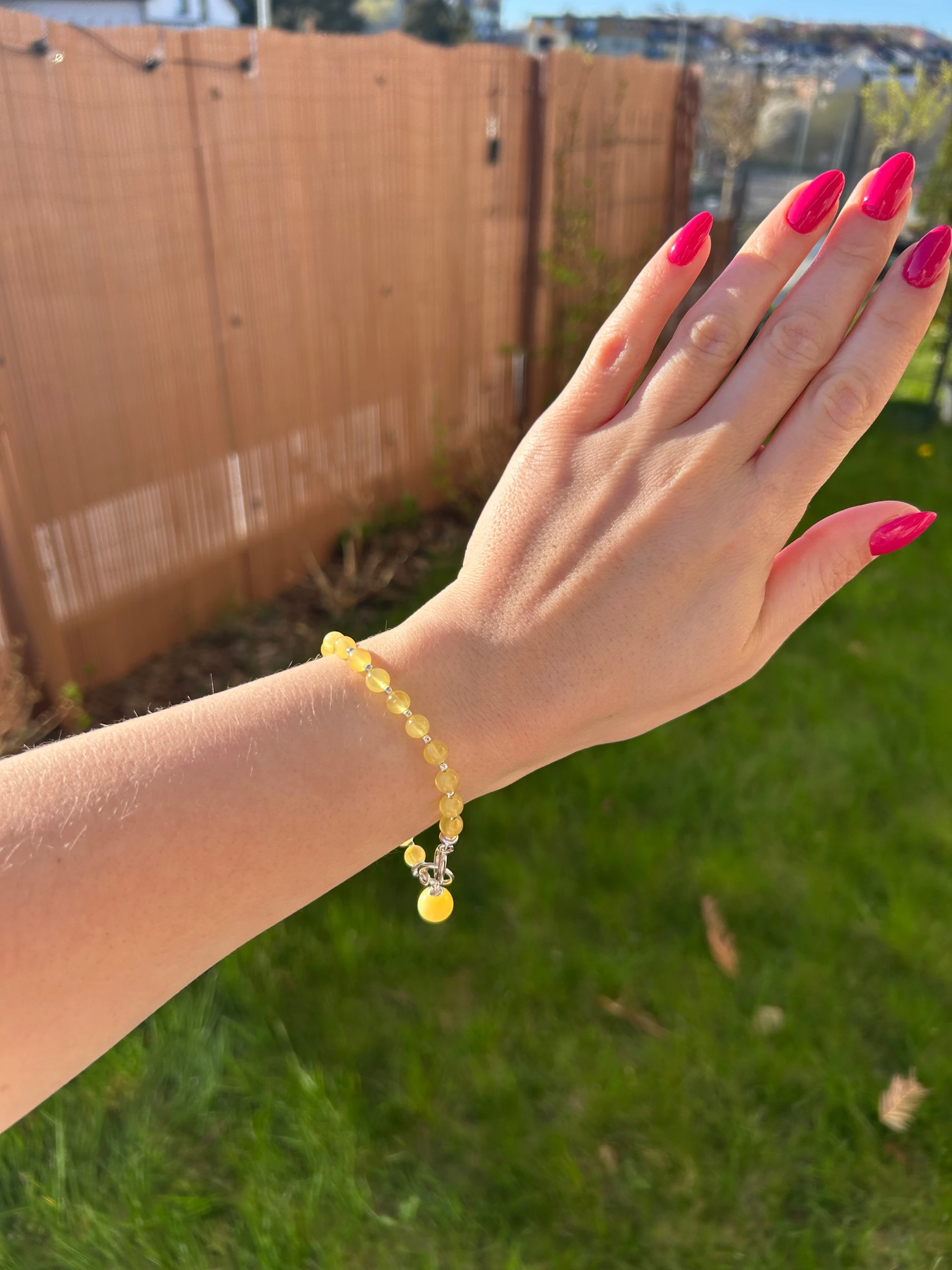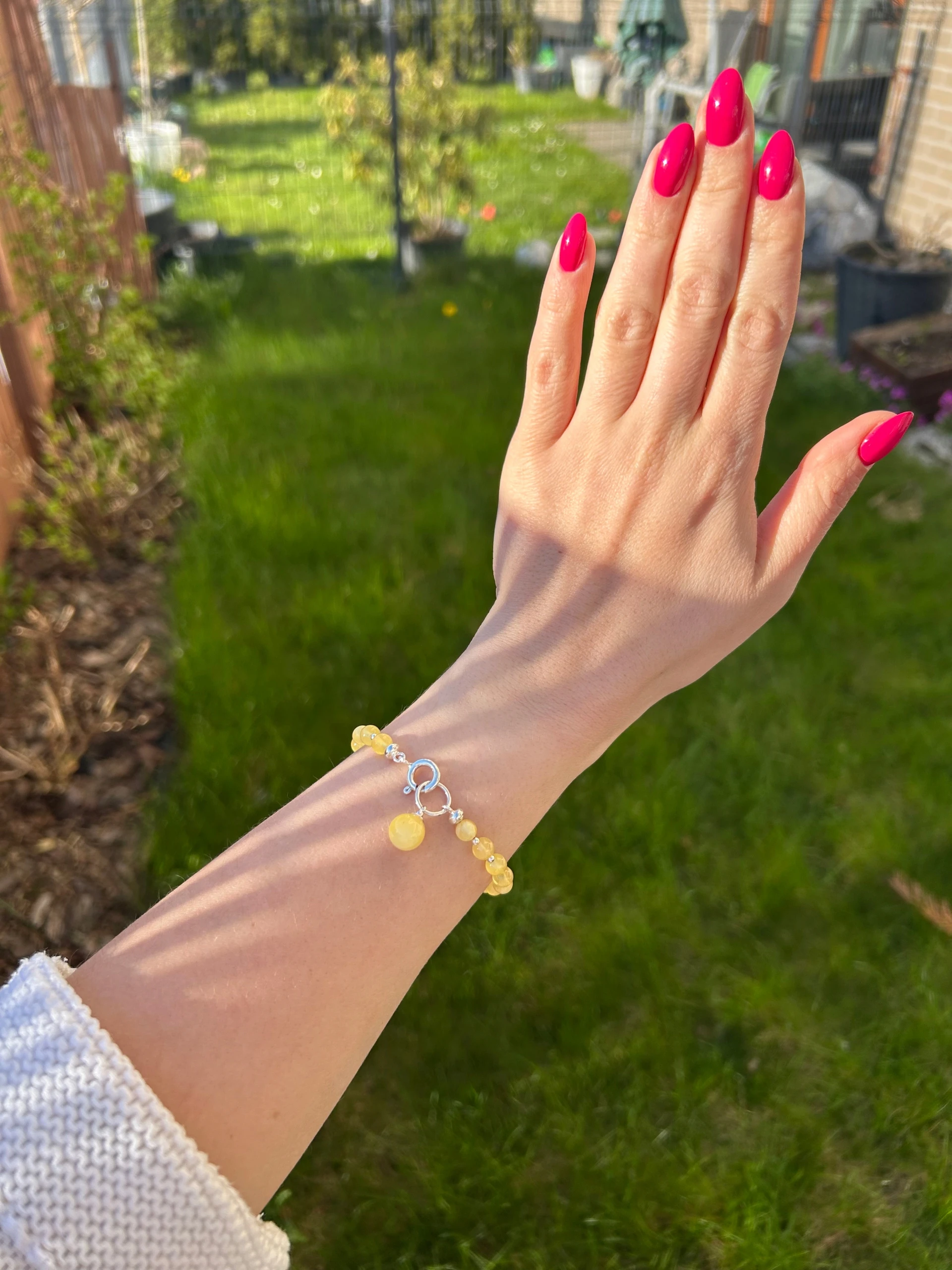 ✔️ Gładko polerowana powierzchnia bursztynu odbija światło, nadając bransoletce eleganckiego blasku i wyrazistości.