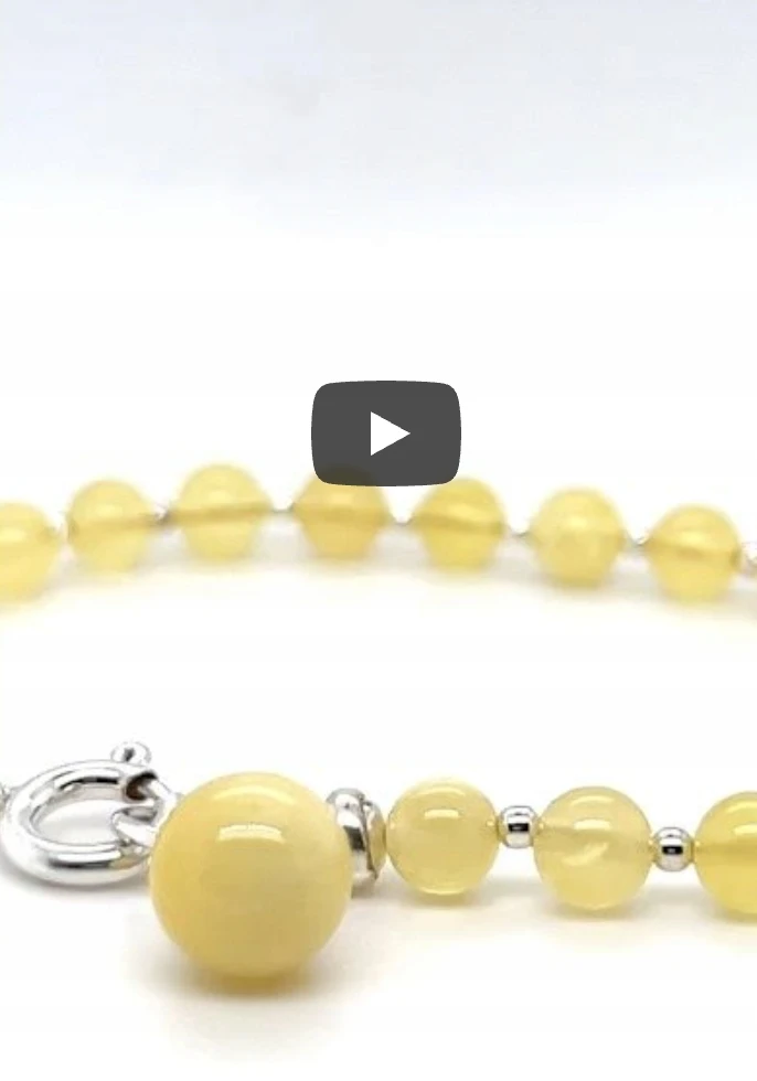 ✔️ Elegancka bransoletka wykonana ze srebra, ozdobiona naturalnym bursztynem o wyjątkowej mlecznej barwie.
