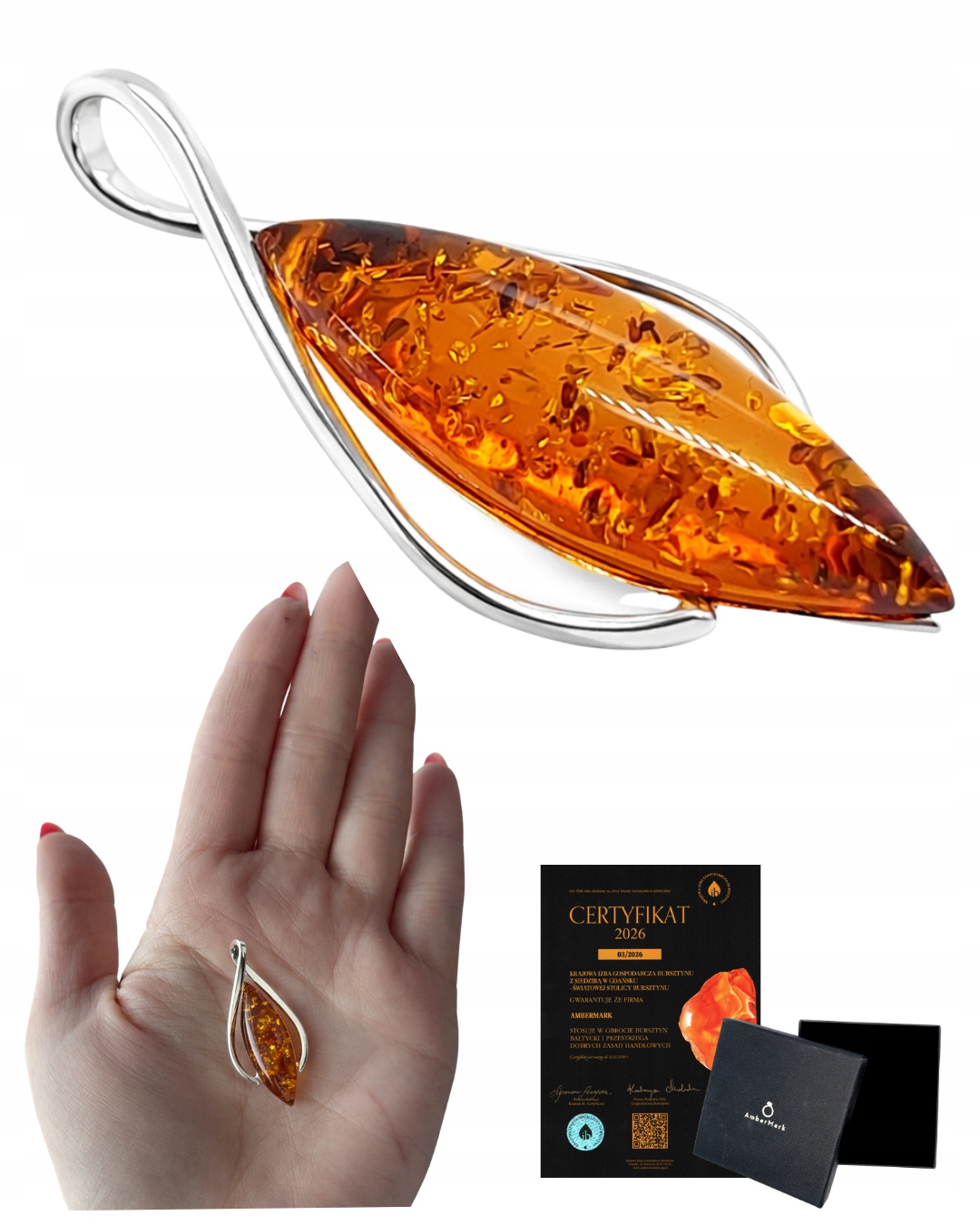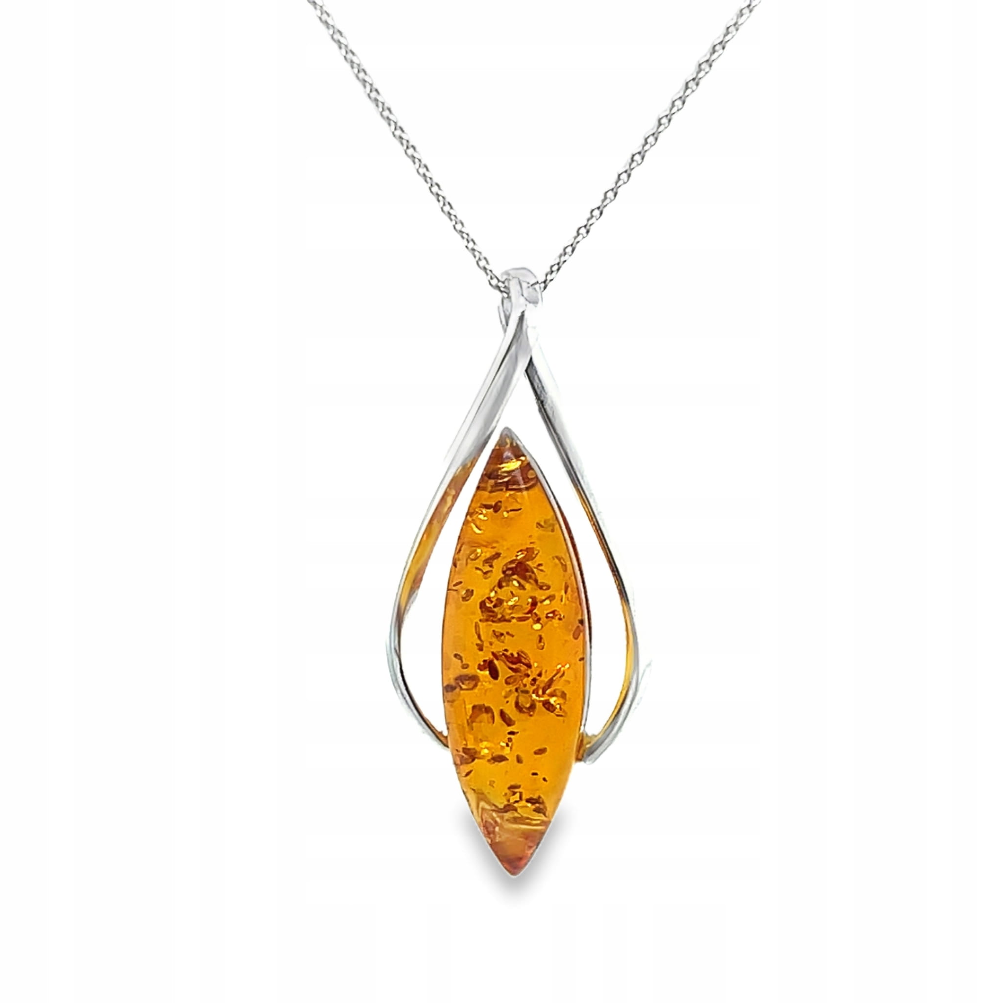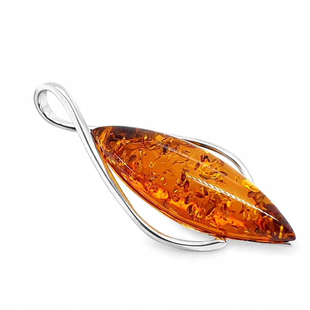 ✔️ Opływowa, srebrna oprawa delikatnie podkreśla kształt bursztynu i nadaje całości elegancki, ponadczasowy charakter.