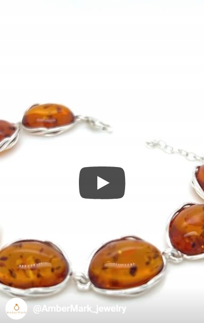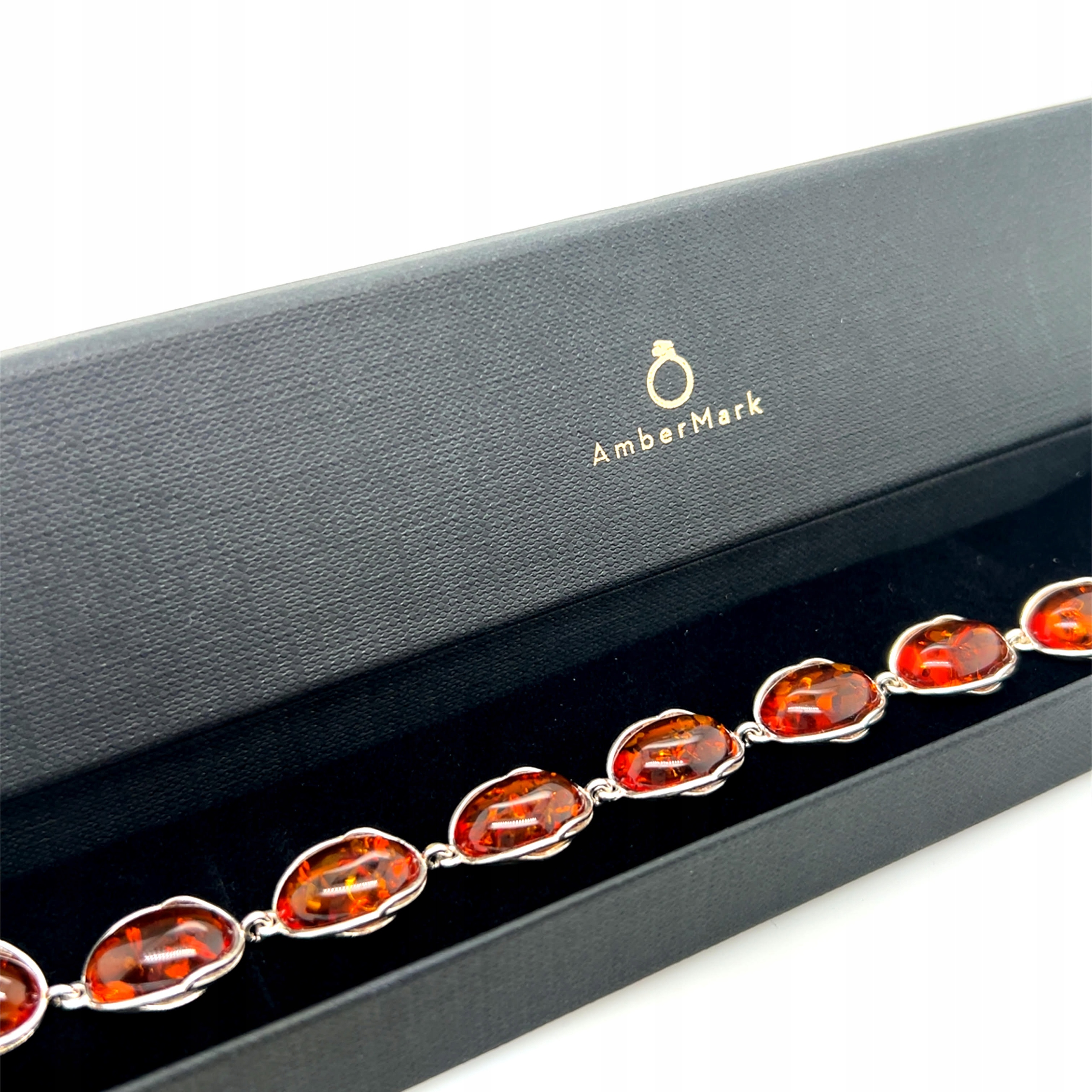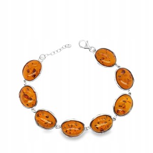 Duża bransoleta ze srebra z bursztynem bałtyckim 925 koniak FILM