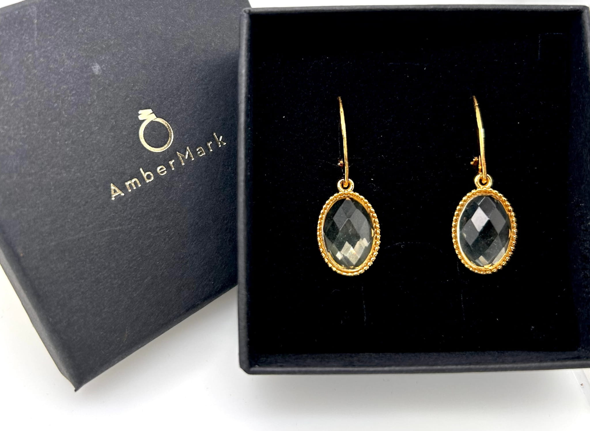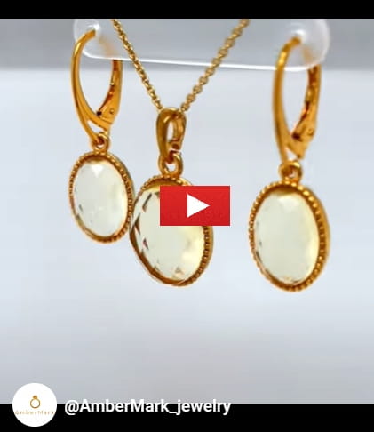 Kolczyki srebrne pozłacane z bursztynem FASETOWANE