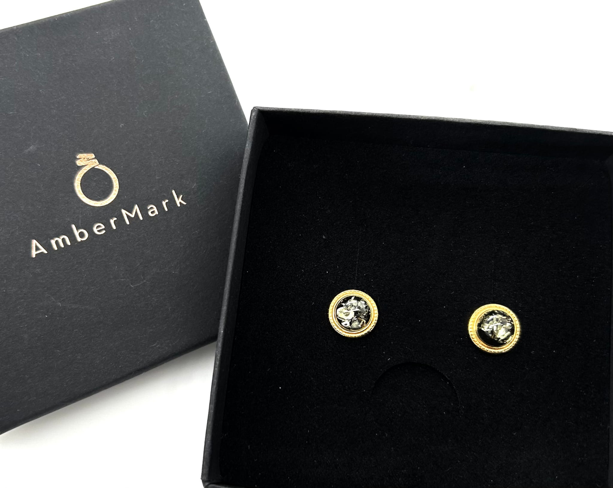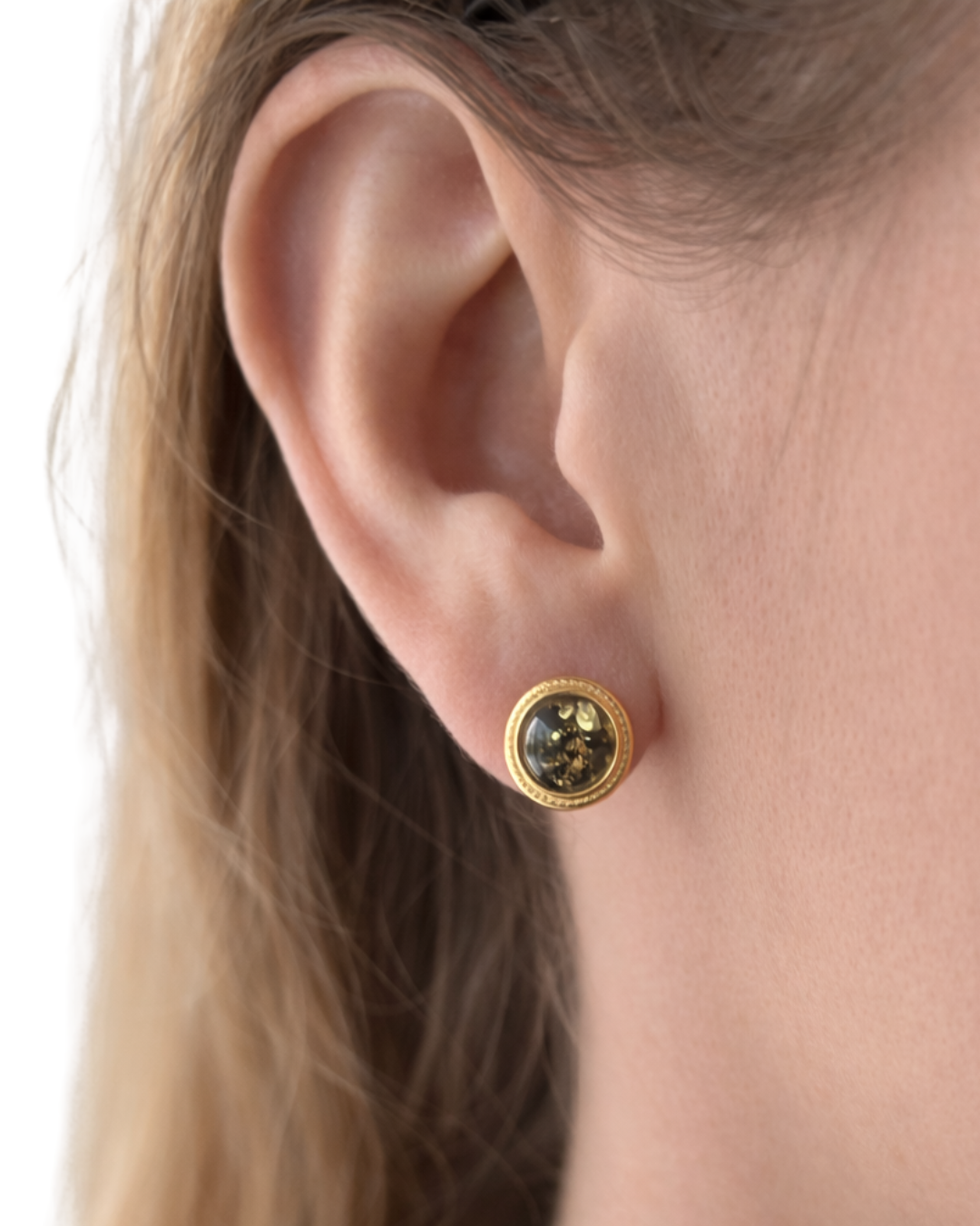 Kolczyki srebrne pozłacane z bursztynem OCZKO