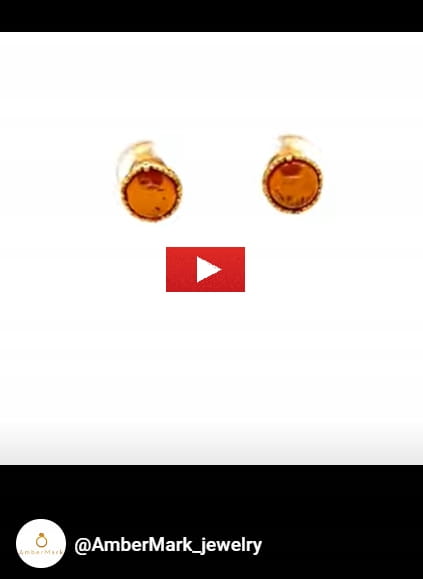 Kolczyki srebrne pozłacane z bursztynem OCZKO