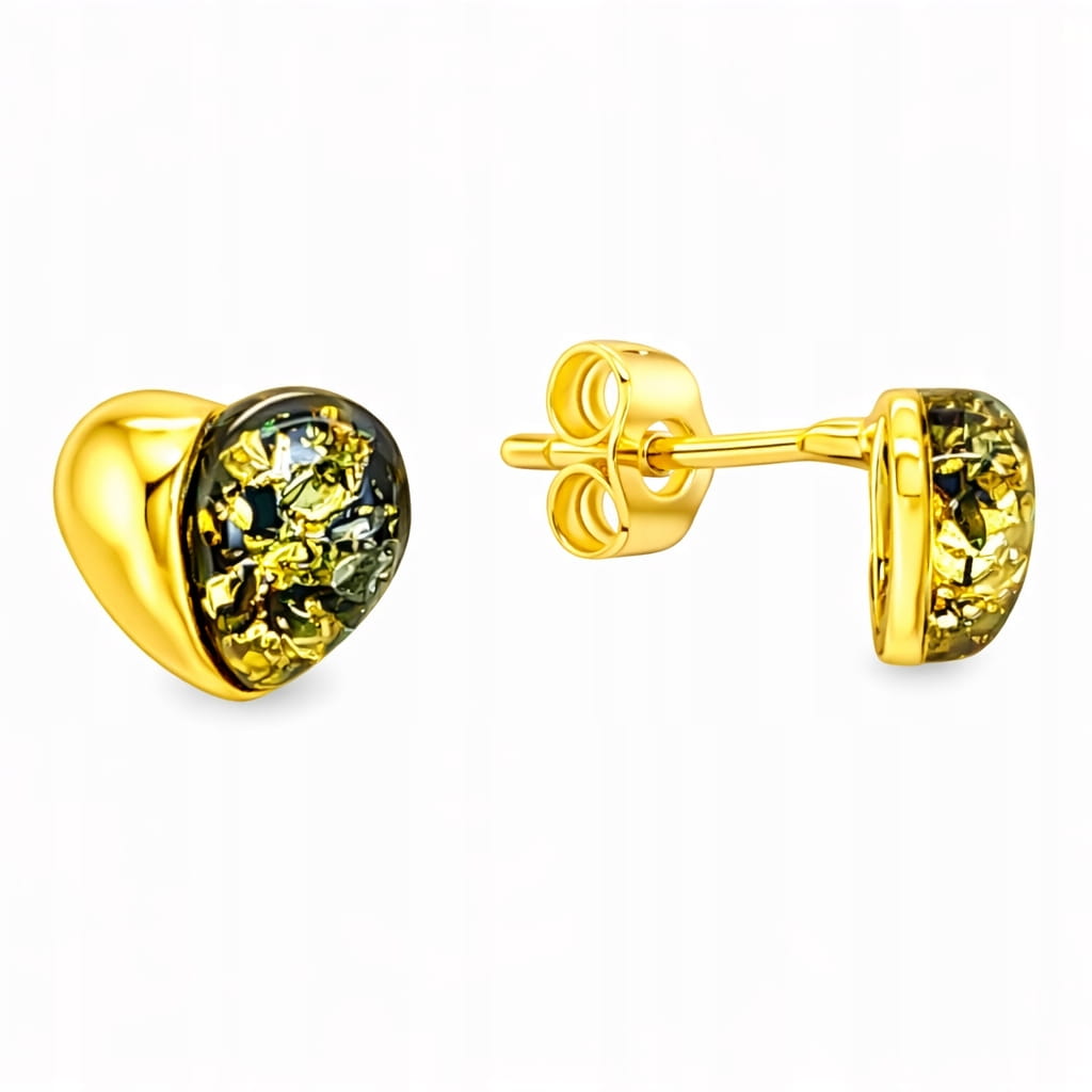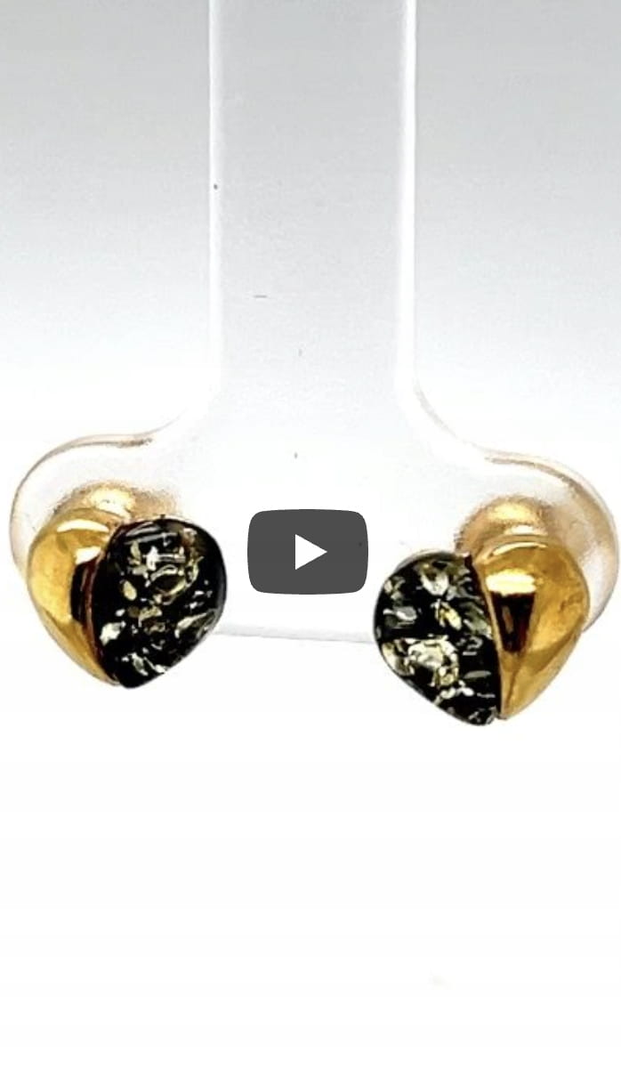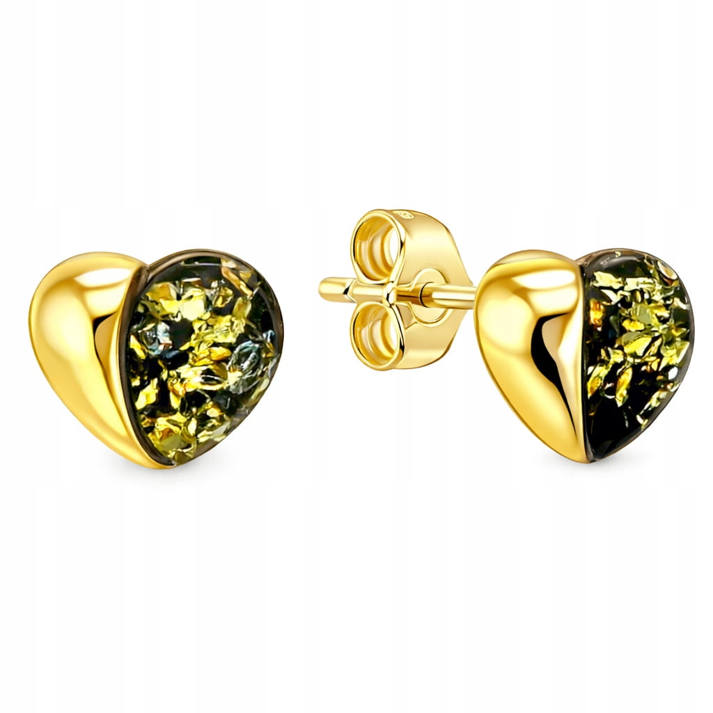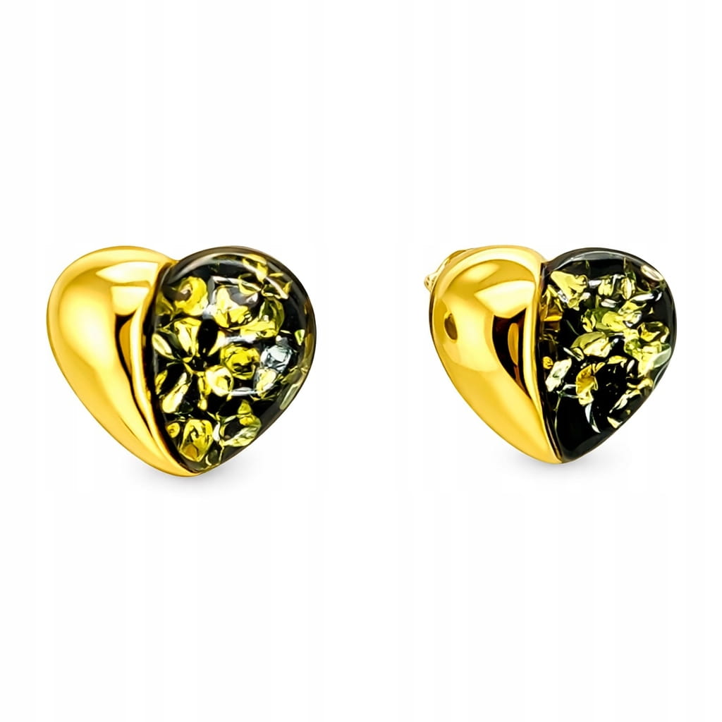 Kolczyki srebrne pozłacane z bursztynem bałtyckim SERCE