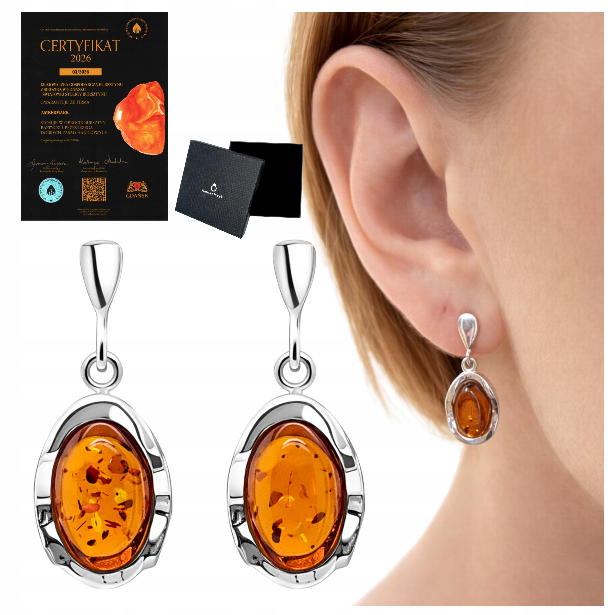 Kolczyki srebrne z bursztynem