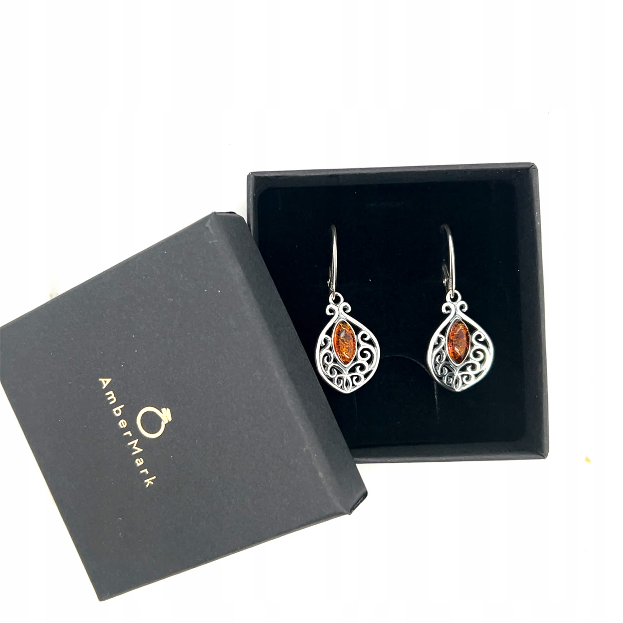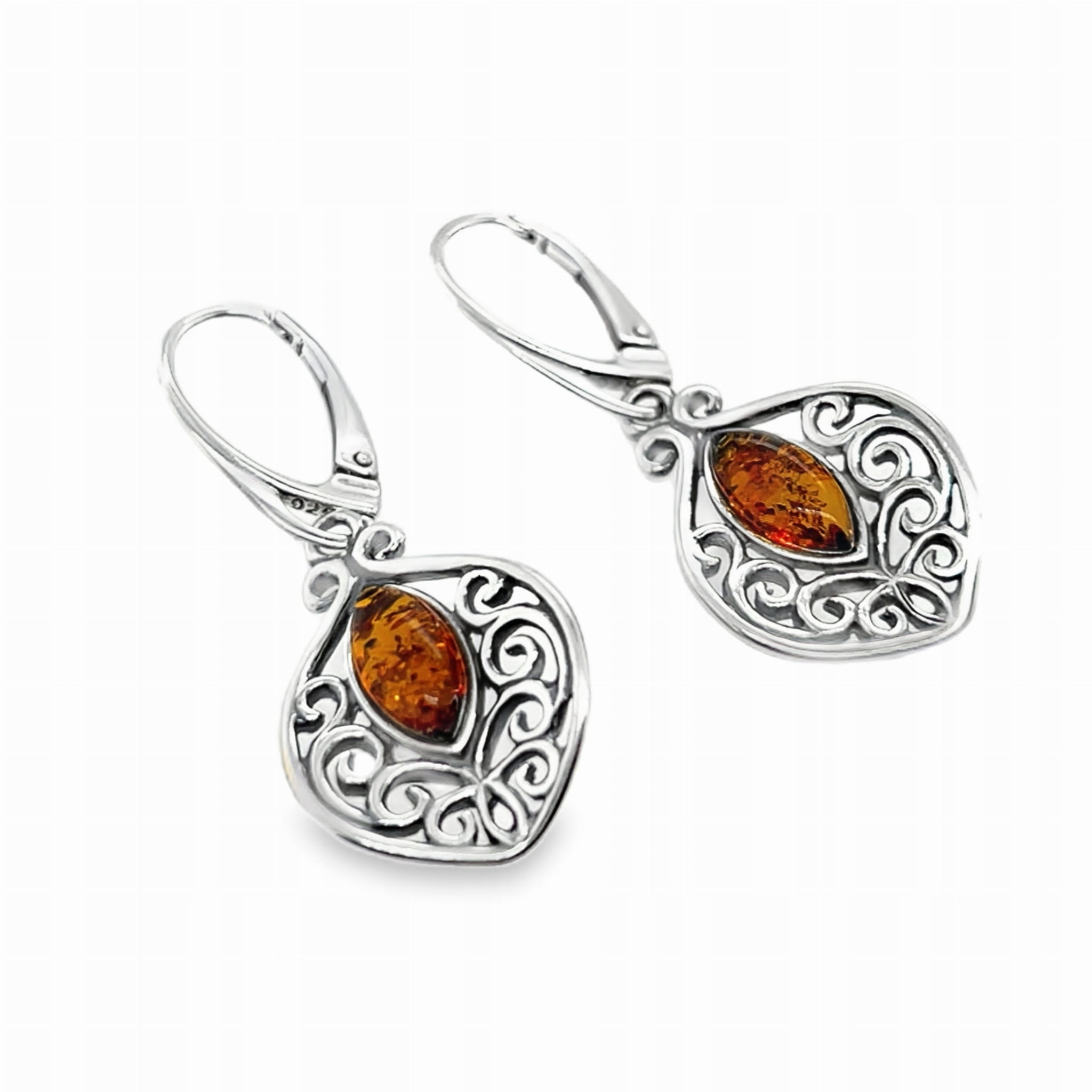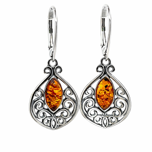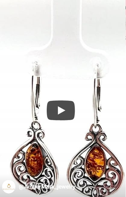 Kolczyki srebrne z bursztynem AZTECKI