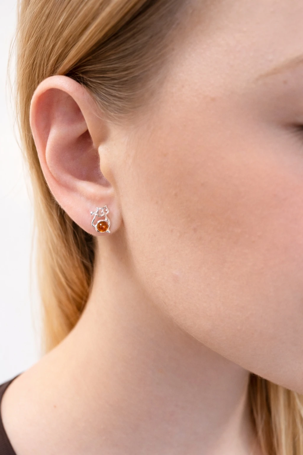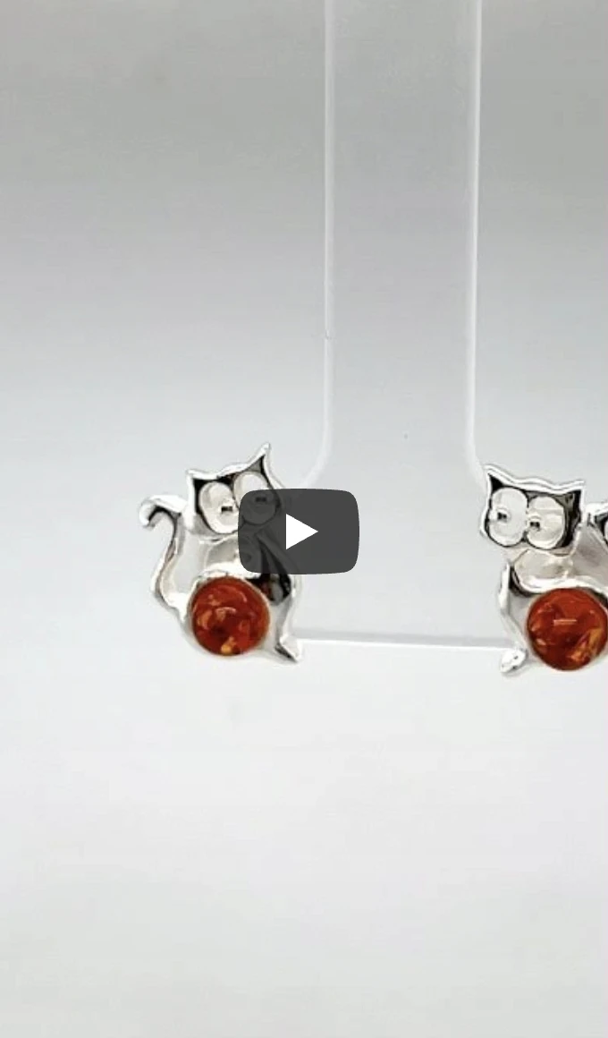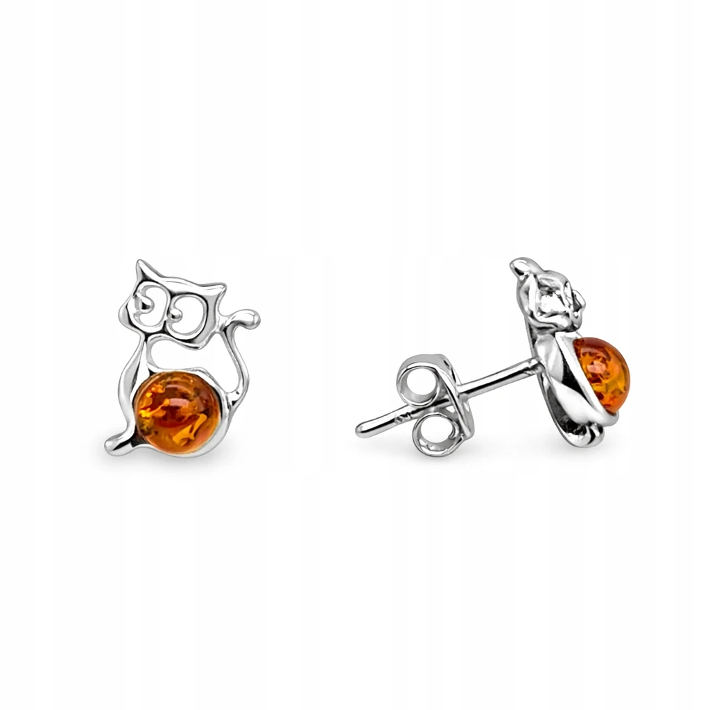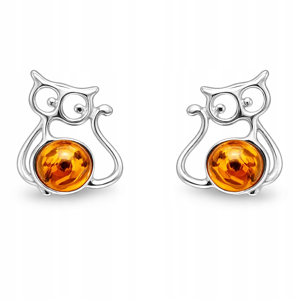 Kolczyki srebrne z bursztynem KOT