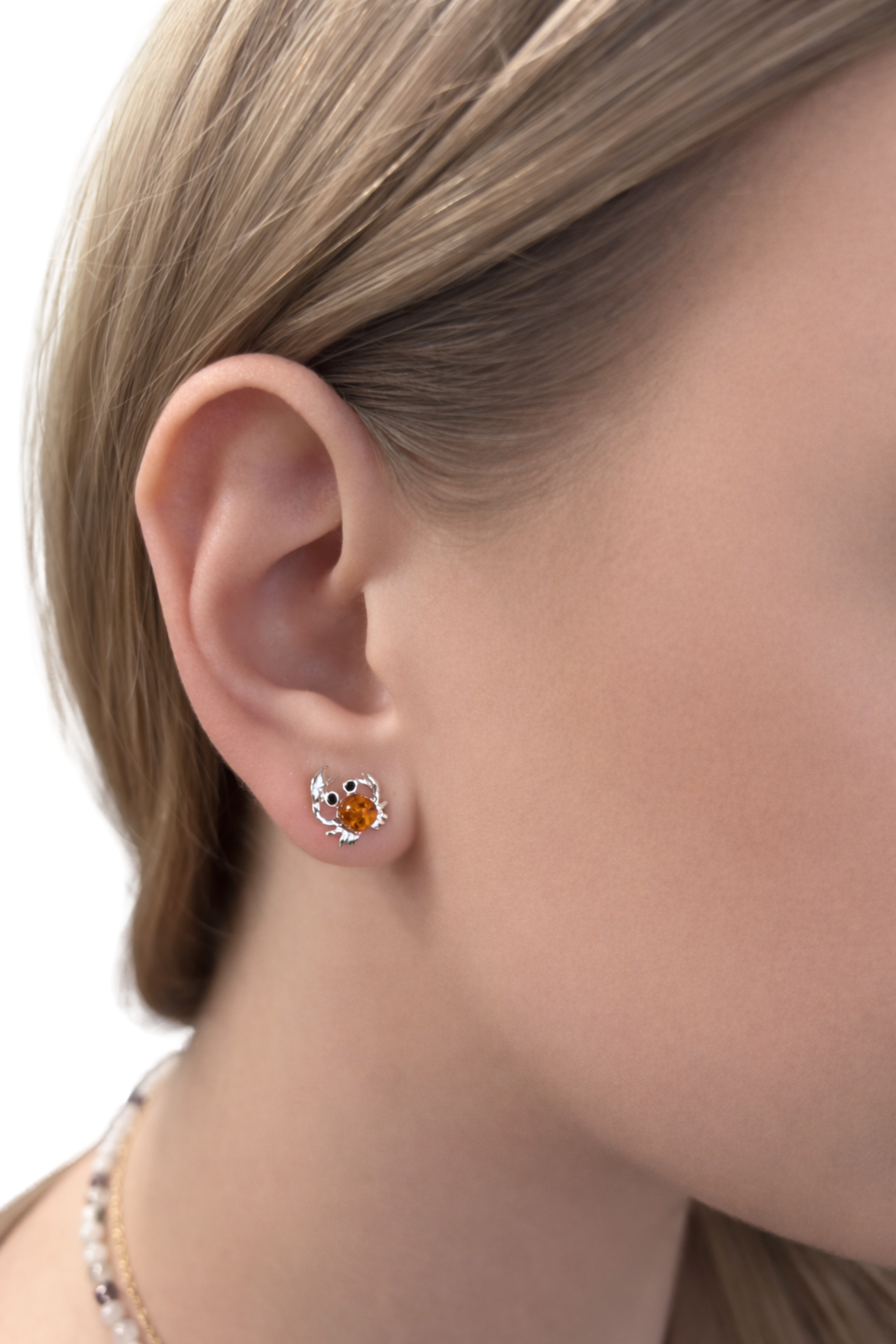 Kolczyki srebrne z bursztynem KRAB