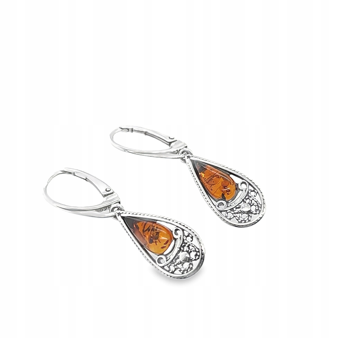 Kolczyki srebrne z BURSZTYNEM wiszące 925 zapięcie Angielskie delkatne FILM