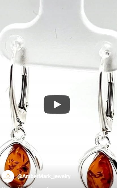 Kolczyki srebrne z bursztynem MARKIZA
