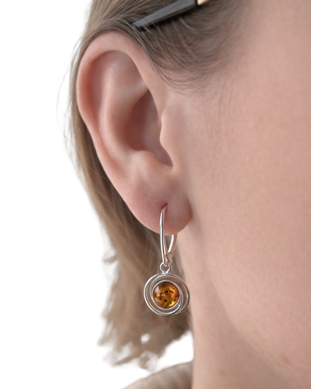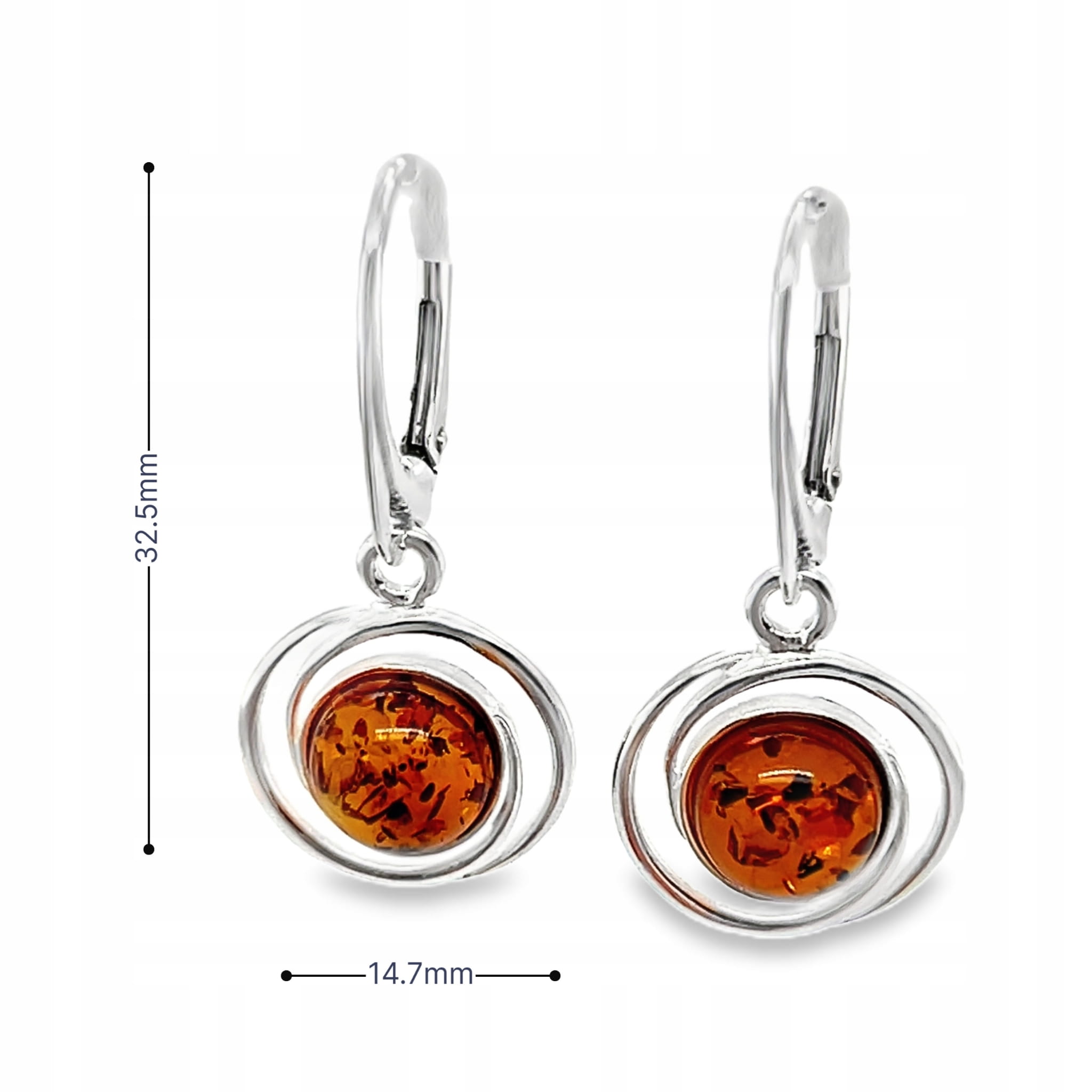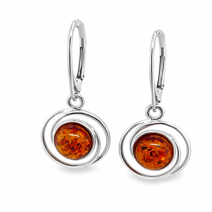 Kolczyki srebrne z bursztynem OCZKO