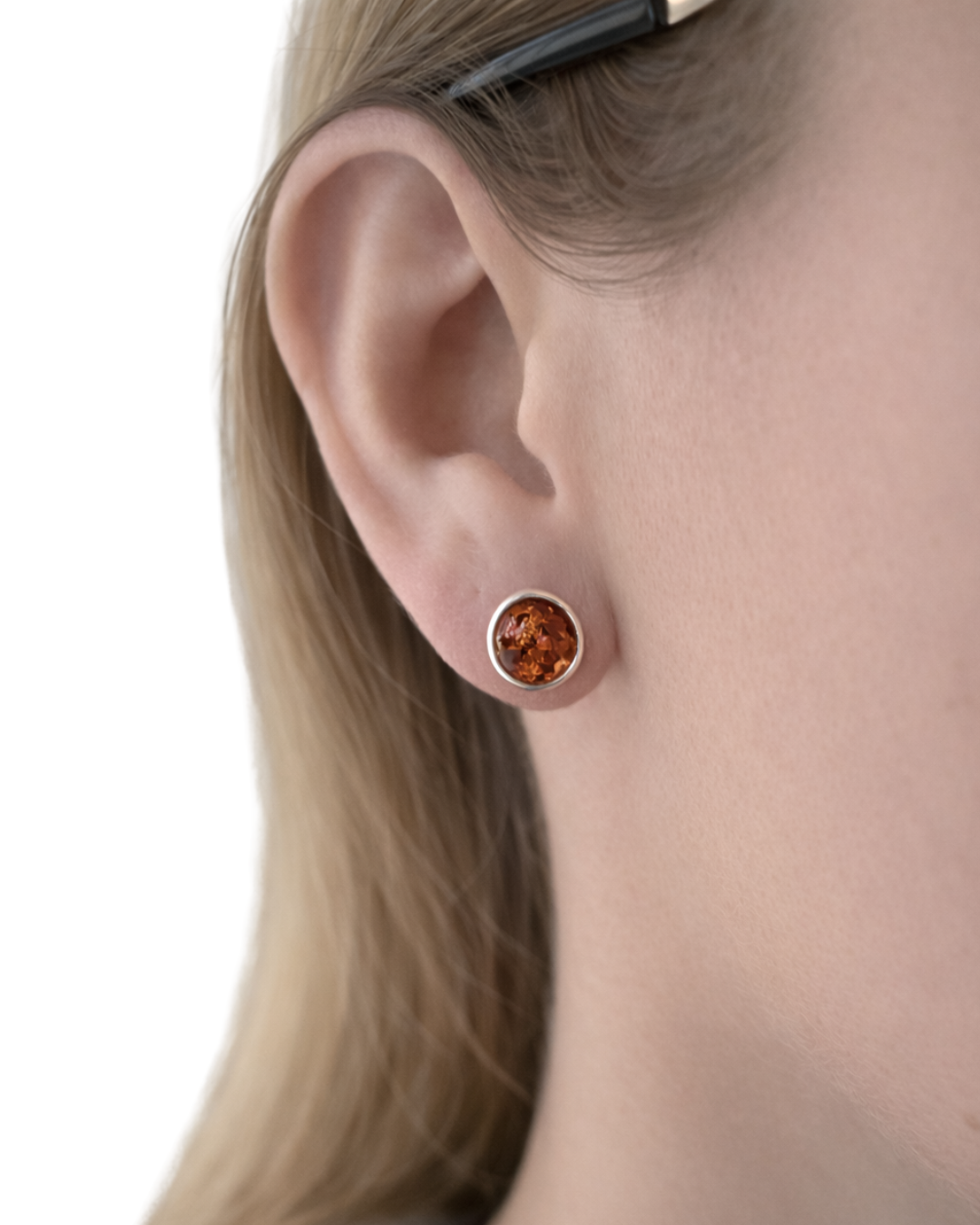 Kolczyki srebrne z bursztynem OCZKO