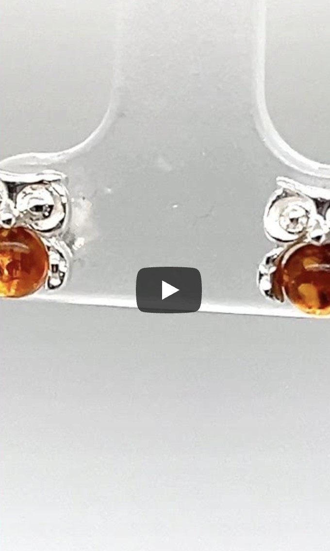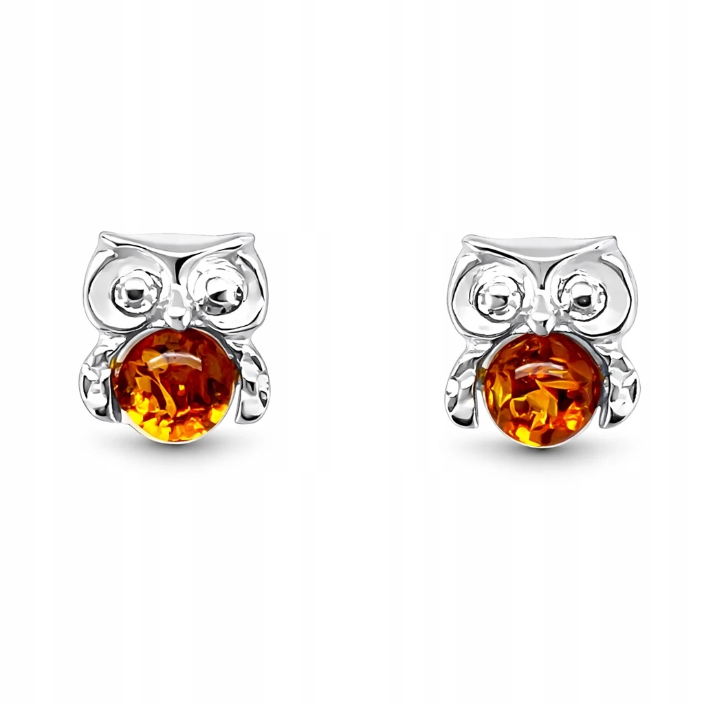 Kolczyki srebrne z bursztynem SOWA