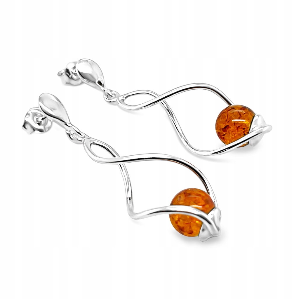 Kolczyki srebrne z bursztynem SPIRALA