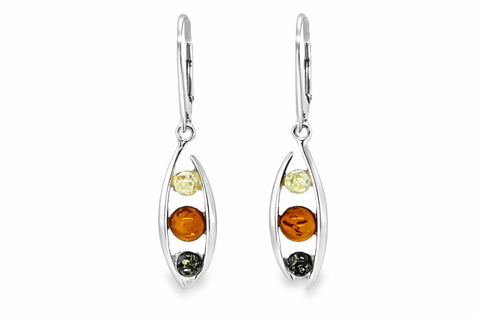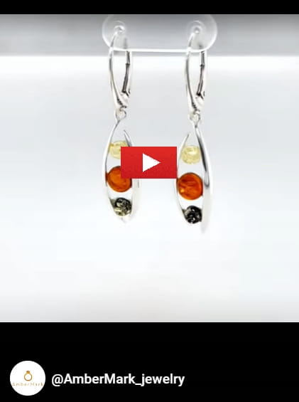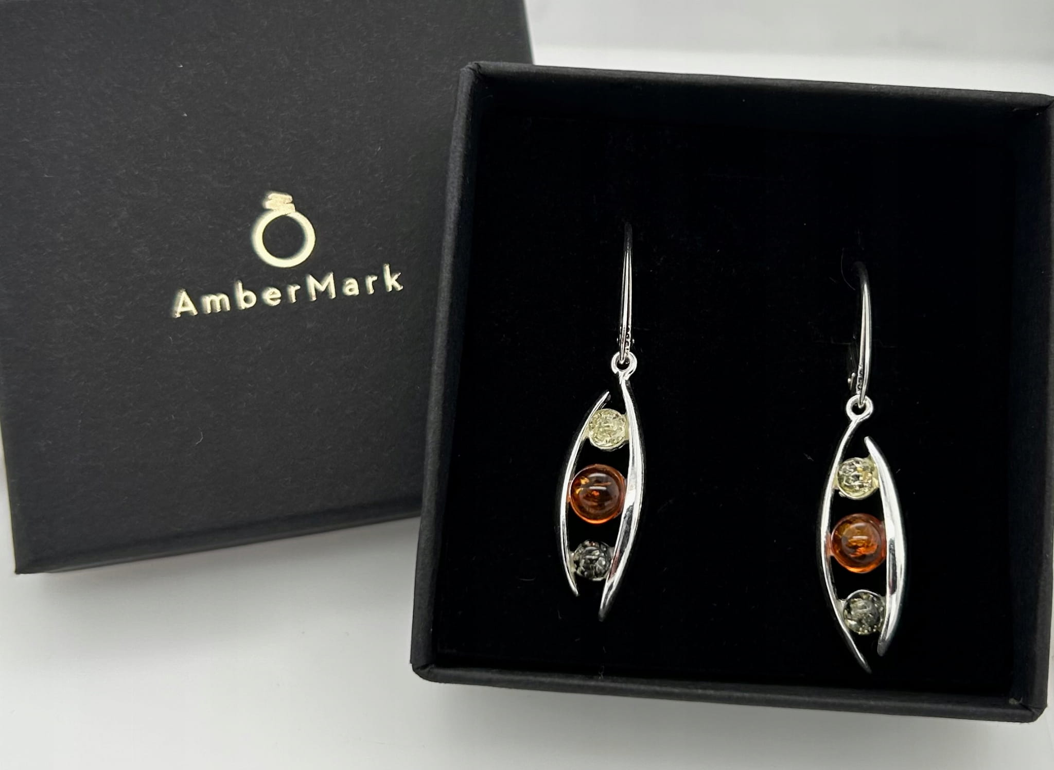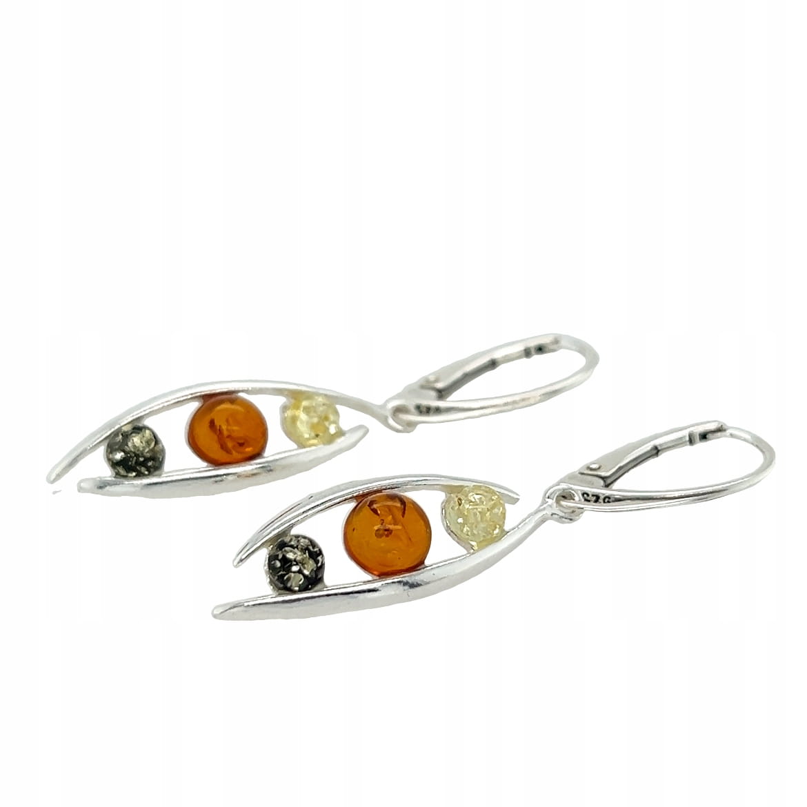 Kolczyki srebrne z bursztynem TRZY KAMIENIE