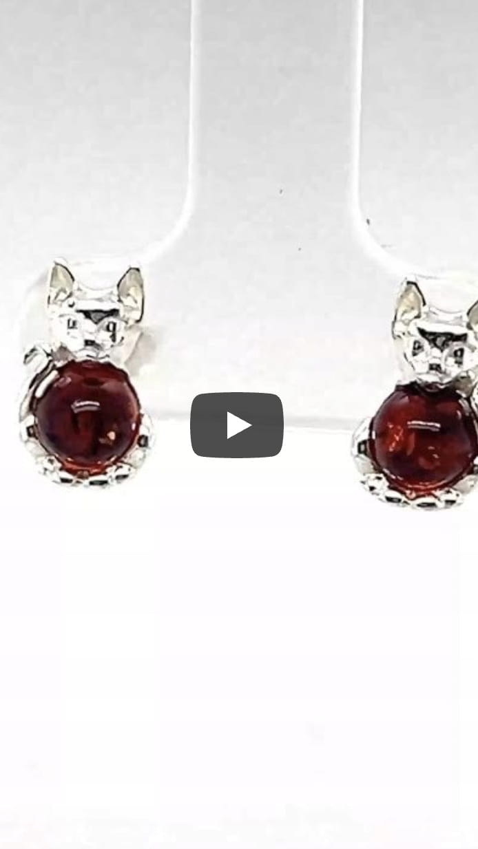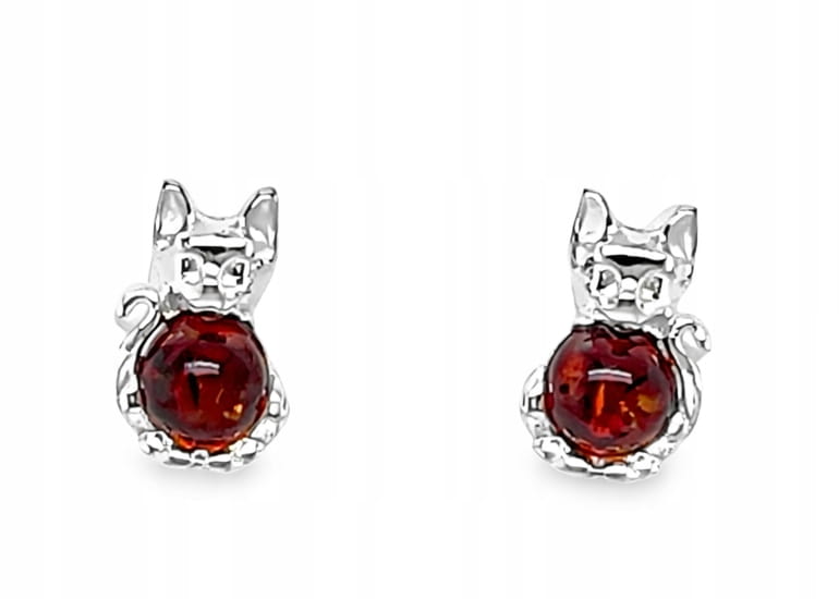 Kolczyki srebrne z bursztynem bałtyckim KOT