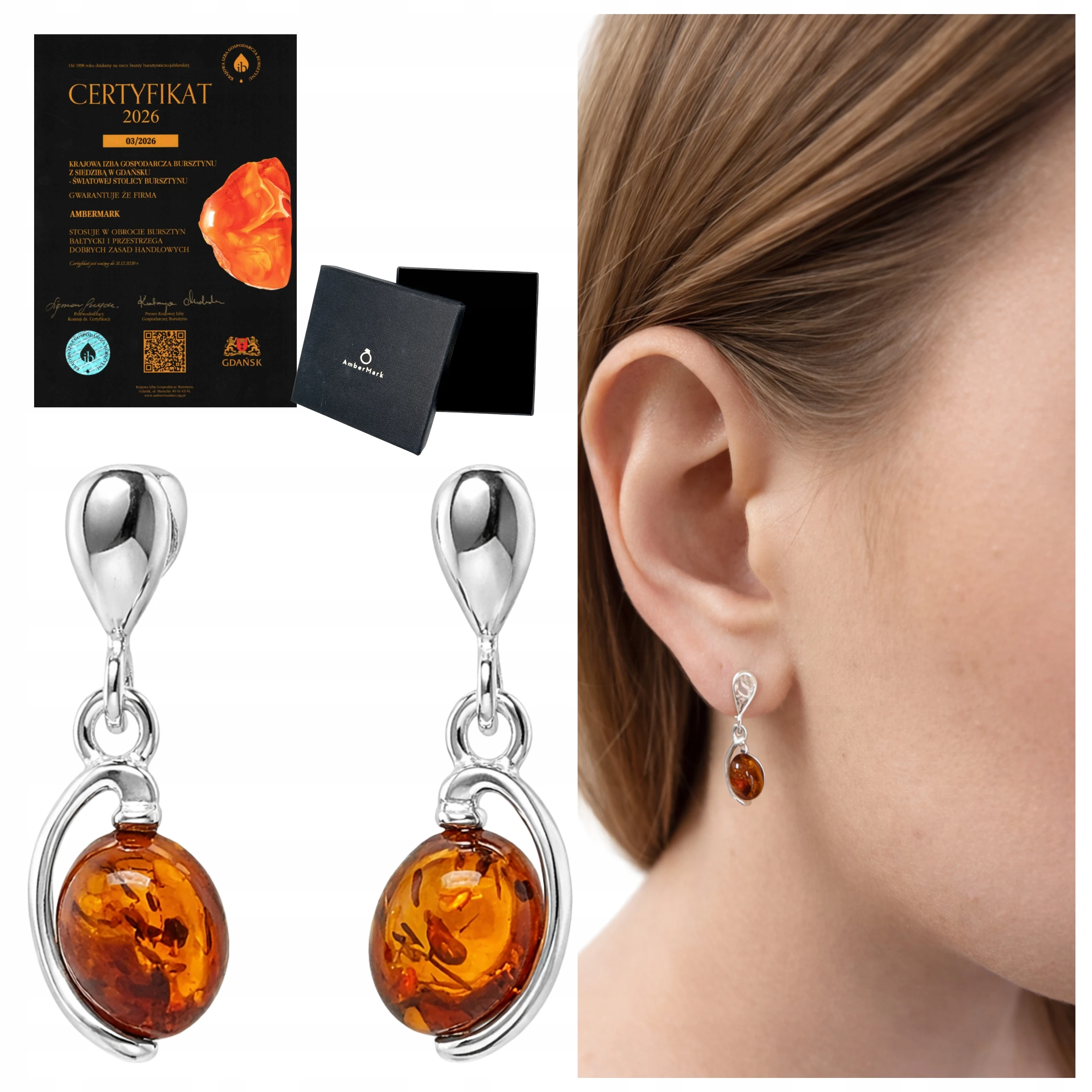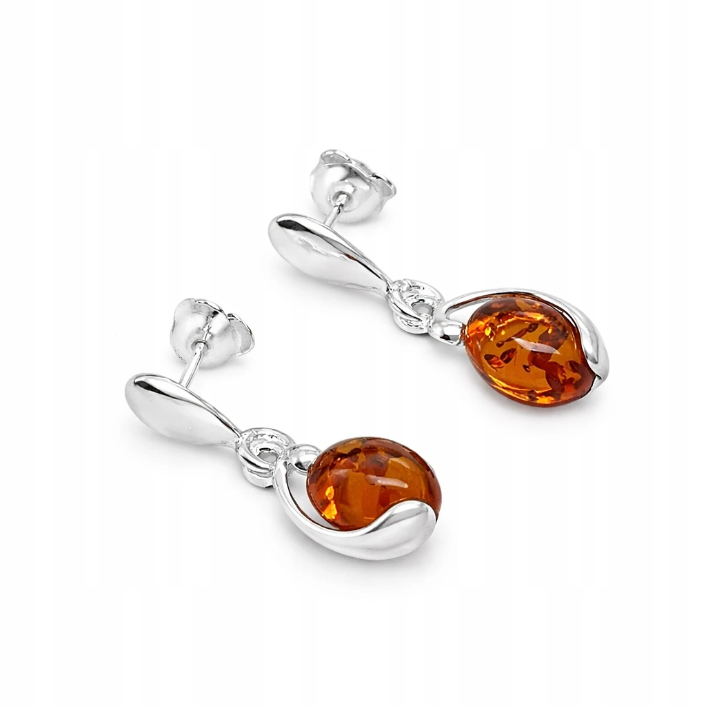 Kolczyki srebrne z bursztynem