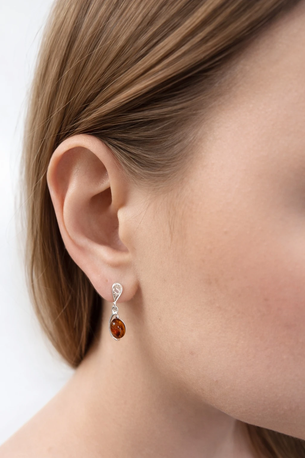 ✔️ Subtelne kolczyki z naturalnym bursztynem w koniakowym odcieniu, oprawione w srebro. Delikatnie rozświetlają ucho i dodają stylizacji elegancji bez przesady.