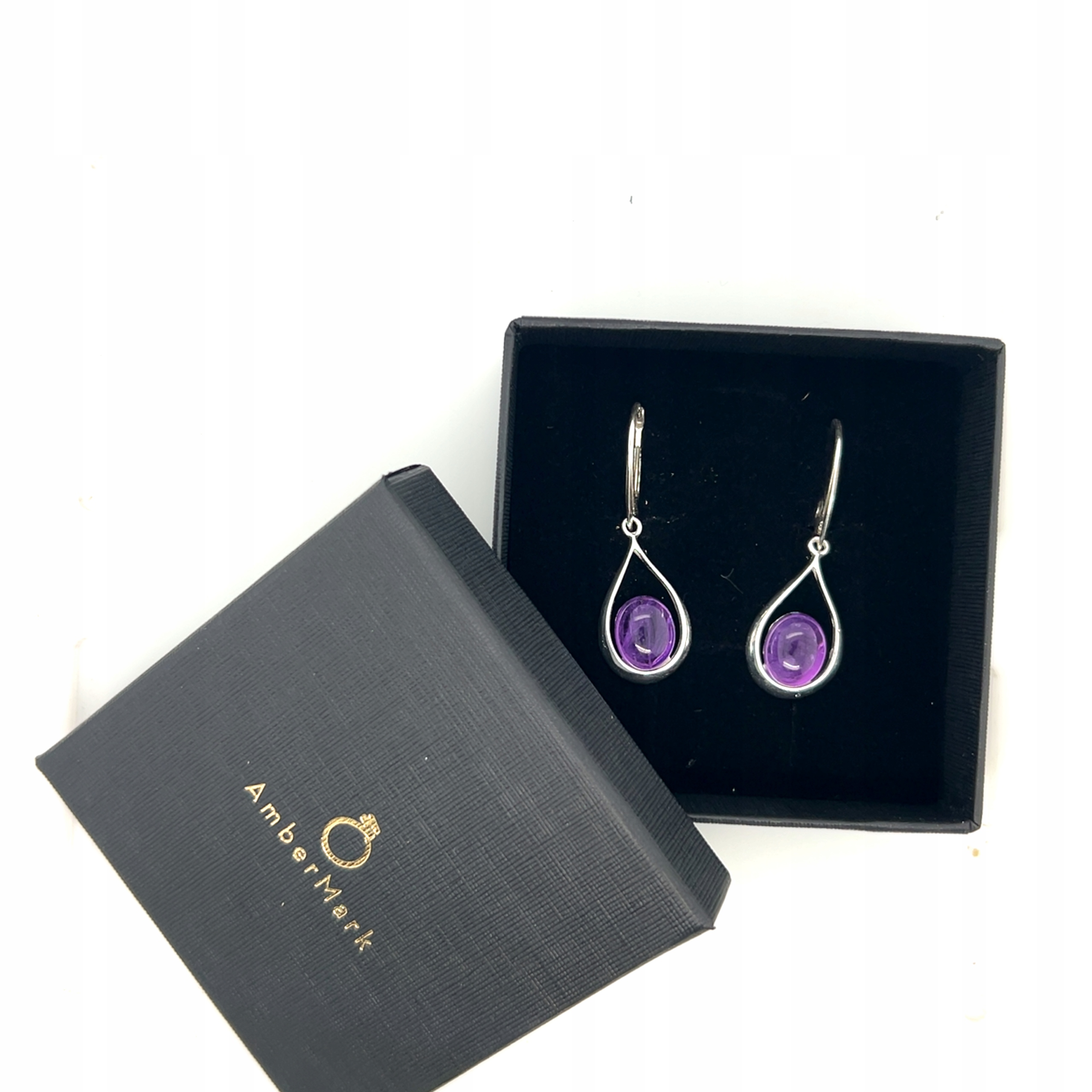 Kolczyki srebrne z naturalnym ametystem SREBRO 925 angielskie FILM