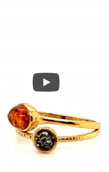 Pierścionek srebrny pozłacany z bursztynem bałtyckim rozmiar 14