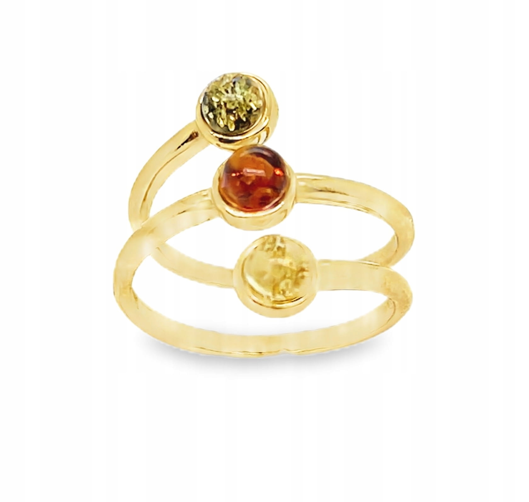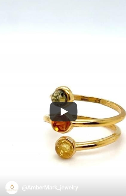 Pierścionek srebrny pozłacany z bursztynem regulowany 16-20
